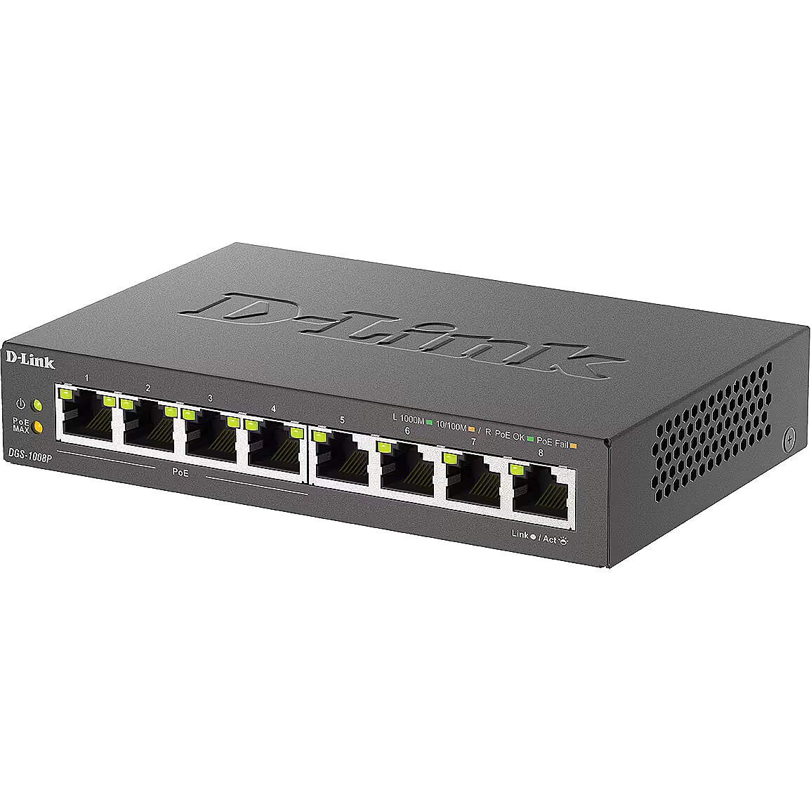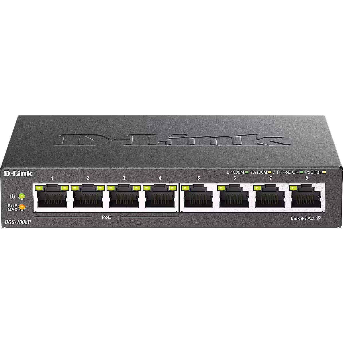 D-Link DGS‑1008P 8-Port Gigabit PoE Unmanaged Desktop Switch
