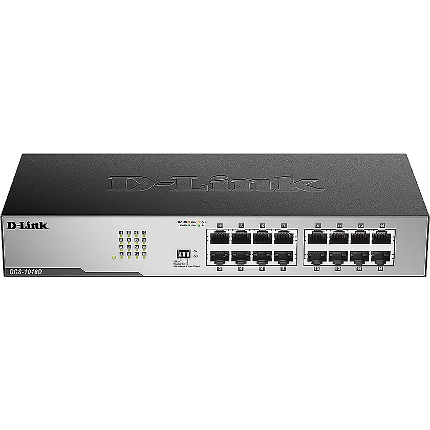 Description - DGS-1016D Switch is an non-managed switch 10/100/1000 Mb/s dedicated to operate on small working groups. Device is characterized by simplicity of operation and installation, and at the same time ensures maximum performance of the network.