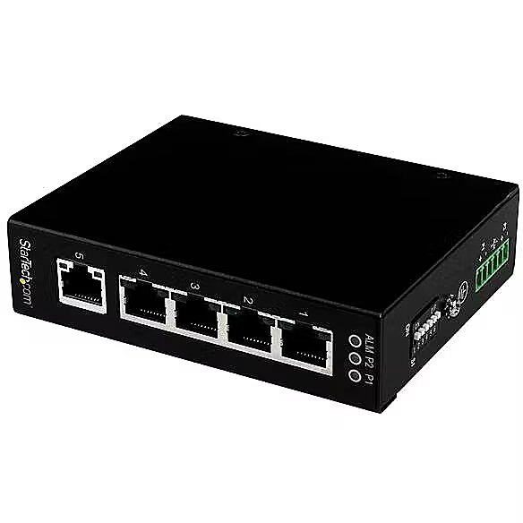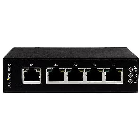 LongDesc - Network up to 5 Ethernet devices through a rugged, industrial Gigabit Ethernet switch - DIN / Wall MountableThe IES51000 5-Port Industrial Ethernet Switch offers 5 Gigabit Ethernet ports in a compact, IP30-rated metal enclosure, making it the ideal network solution for harsh industrial environments such as factory floors, warehouses or large junction boxes.Quickly connect your network devices with little to no configuration. This unmanaged industrial network switch supports 10/100/1000 Mbps transfer speeds, full/half-duplex auto-negotiation, jumbo frames and auto MDI/MDIX, which helps to eliminate the hassle of troubleshooting mis-matched speed and duplex settings.Providing seamless operation in the event of power dips or failures, the switch features redundant 12-58V DC terminal block power inputs to help prevent unnecessary downtime. When used with two power sources, the switch also supports alarm relay contacts that you can wire to your existing alarm circuit to notify you instantly when a power disruption occurs.For easy installation and dependable performance in harsh environments, the switch can be DIN Rail or wall mounted and features a compact, IP30-rated enclosure with an extended operating temperature range (-40°C to 75°C).Backed by a StarTech.com 2-year warranty and free lifetime technical support.The StarTech.com Advantage- Seamless performance even in harsh industrial conditions, with an extended temperature range and an IP30-rated enclosure- Maintain device operation during power disruptions, with redundant power inputs- Install the switch exactly where you need it, using the included DIN Rail & wall-mount brackets