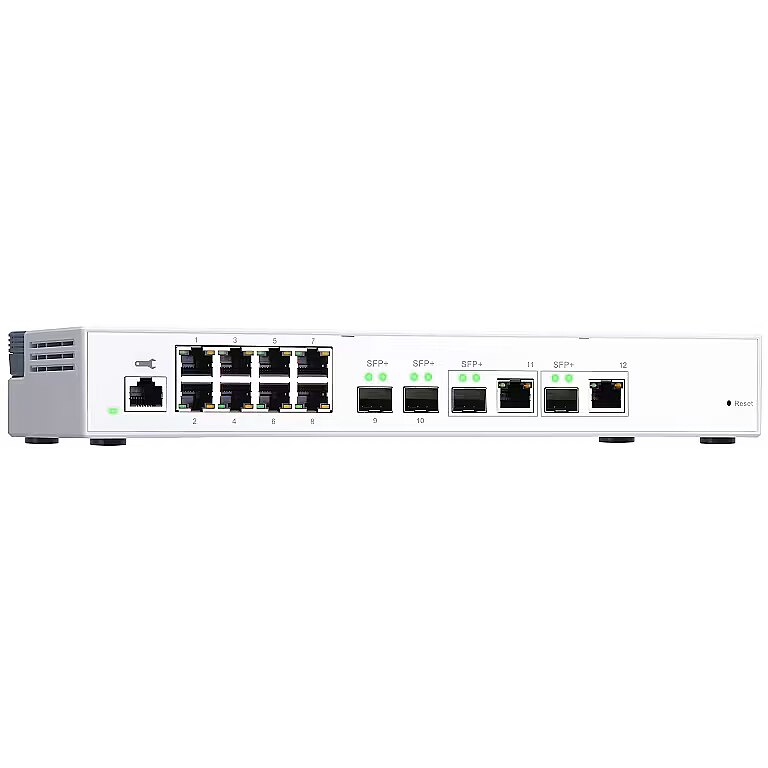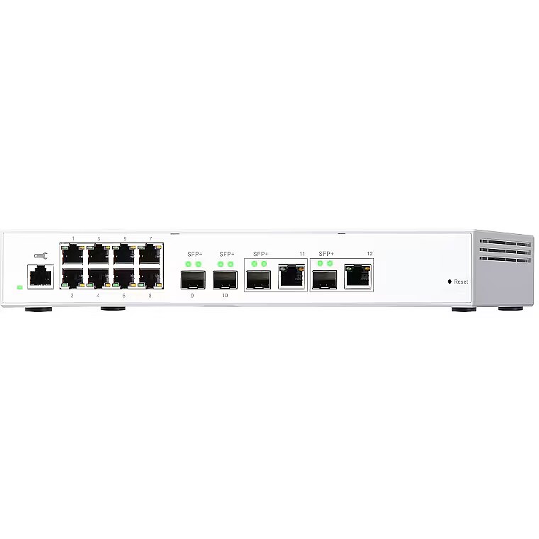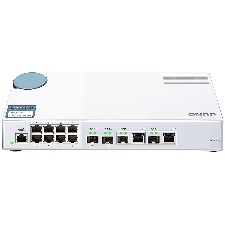 LongDesc - The QSW-M408-2C is a Layer 2 Web Managed Switch equipped with four 10GbE SFP+ ports (with two 10GbE SFP+/RJ45 combo ports) and eight Gigabit ports. Supporting Layer 2 switching and network management via user-friendly web user interface, the QSW-M408-2C offers flexible deployment in a hybrid high-speed network infrastructure and an entry-level network management solution for even non-IT professionals. The QSW-M408-2C is compatible with 10GbE and NBASE-T technologies that supports up to five speeds (10G / 5G / 2.5G / 1G / 100M) to provide higher transmission speeds with your existing Cat 5e and 6a cables. With its high performance, user-friendly management features and desktop size, the QSW-M408-2C allows you to instantly upgrade to a hybrid high-speed network environment at a cost-effective price, while optimizing network bandwidth and ensuring network maintenance securityFlexible deployment with multiple 10G SFP+ fiber and Gigabit portsThe QSW-M408-2C provides four 10GbE SFP+ ports (with two 10GbE SFP+/RJ45 combo ports) and eight Gigabit ports for connecting various devices and enabling hybrid high-speed networks. With SFP+ interfaces, direct attach copper (DAC) cables can be used for connecting directly to SFP+ devices. You can also use 10G-SFP-T copper transceiver modules to connect 10GBASE-T/NBASE-T devices through RJ45 Category 6, 5 or 5e cabling. The switching capacity of QSW-M408-2C is 96Gbps, guaranteeing the full potential of each port.