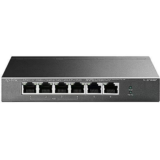 Description - TP-LINK TL-SF1006P + 6× 10/100 Mbps RJ45 ports + 4× PoE+ ports transfer data and power on individual cables + Works with IEEE 802.3af/at compliant PDs + Up to 250m data and power transmitting range under Extend Mode** + Priority Mode ensures high priority of ports 1–2 to guarantee the quality of sensitive application + Supports PoE Power up to 30 W for each PoE port + Supports PoE Power up to 67 W for all PoE ports* + Plug and play with no configuration required + Learn more about TP-Link PoE technology