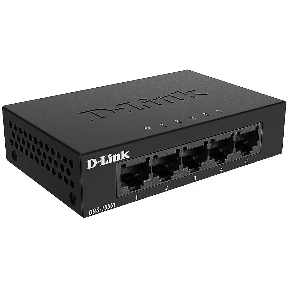 LongDesc - Effortless Gigabit networking.Easily upgrade or extend your home or small business network with high‑speed energy‑saving Gigabit connectivity. It’s optimised for intensive 4K video streaming, surveillance, large file downloads and conferencing.Gigabit EthernetSave time transferring large files and improve sharing and productivityEnergy Efficient DesignAutomatic power saving features to reduce power usageCompact Metal HousingSturdy, compact metal housing with fanless design for silent operationEasy SetupPlug-and-play installation enables you to expand the network in secondsPlug‑and‑play. Easily extend a network.The DGS-105GL is a plug-and-play device that requires no advanced technical configuration. You can easily connect multiple computers within minutes, and start sharing an internet connection, files, music, and video across your small office or home network.Effortless traffic optimisation.With Gigabit transfer speeds on each port, you can rapidly transfer files between connected computers and devices. The switch features 802.1p Quality of Service (QoS), which automatically organises and prioritises time-sensitive and critical data for efficient delivery, allowing for buffer-free video streaming as well as smooth video and voice calls.Designed for life, built to last.The DGS-105GL features a fanless design for silent operation, reduced energy consumption, and increased reliability by eliminating a common point of failure. Its sturdy compact metal housing ensures the product can withstand wider operating temperatures by helping to dissipate heat and reduce stress on internal components.Energy Saving.The compact, metal housing and fanless design mean the switches can be placed virtually anywhere and operate silently. The DGS-105GL is designed with energy efficiency in mind. The switches automatically reduce power to ports that are inactive or not connected, and support the IEEE 802.3az Energy-Efficient Ethernet standard.