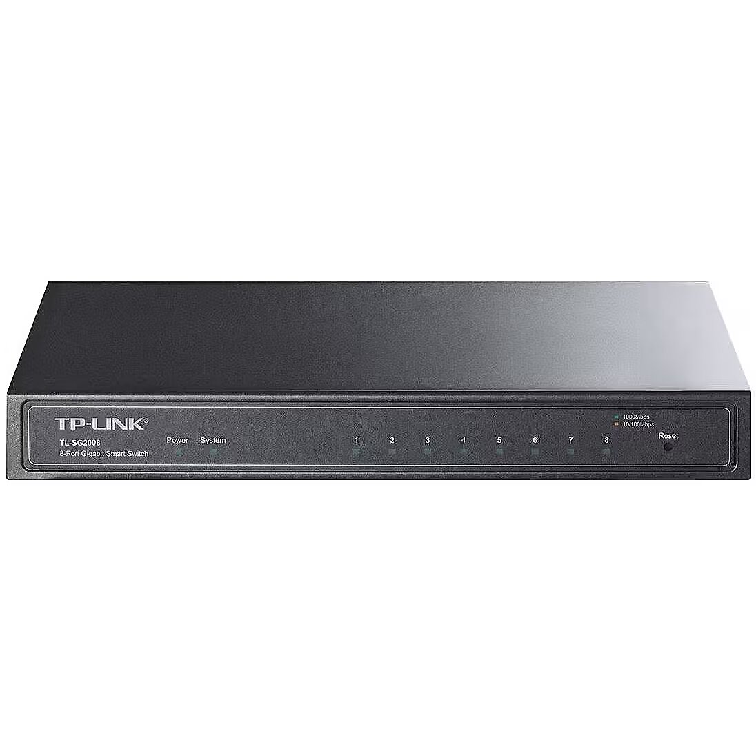 Description - TP-LINK Gigabit Smart Switch TL-SG2008 is equipped with 8 gigabit RJ45 ports. The switch provides high performance, enterprise-level QoS, useful security strategies and rich layer 2 management features. TP-LINK’s 8-Port Gigabit Smart Switch TL-SG2008 is especially designed for the small and medium business networks that require efficient network management. TL-SG2008 comes with a comprehensive set of features, such as Link Aggregation Group, 802.1Q VLAN, Access Control Lists (ACL), Quality of Service(QoS L2 to L4), Storm Control and IGMP Snooping to provide a small or medium-sized business with a network that is geared for growth while ensuring performance and reliability. What’s more, its easy-to-use web management interface means faster setup and configuration with less downtime, providing the ideal solution for your business network.