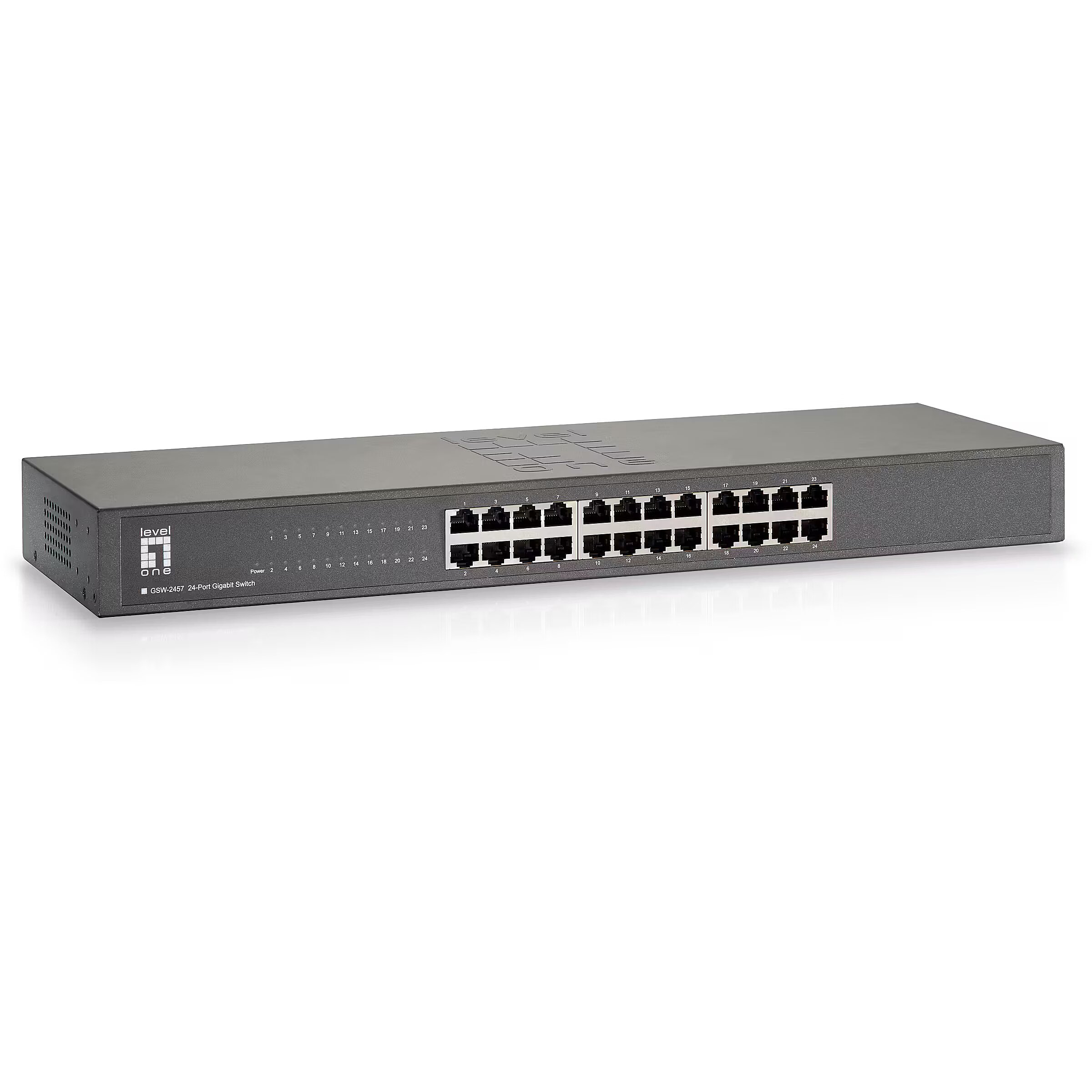 LongSummaryDescription - LevelOne 24-Port Gigabit Switch. Switch type: Unmanaged. Basic switching RJ-45 Ethernet ports type: Gigabit Ethernet (10/100/1000), Basic switching RJ-45 Ethernet ports quantity: 24. MAC address table: 8000 entries, Switching capacity: 48 Gbit/s. Networking standards: IEEE 802.3, IEEE 802.3ab, IEEE 802.3af, IEEE 802.3az, IEEE 802.3u. Rack mounting