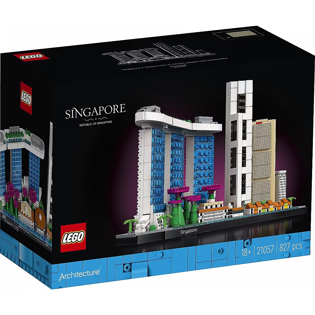 Technical_details - 21057 Architecture Singapore, construction toys The Singapore (21057) model kit from the LEGO Architecture Skyline collection for teenagers and adults lets you travel to one of the most exciting cities in the world - and all without a passport! Experience magical moments at Marina Bay Sands, OCBC Centre, Raffles Hotel, Lau Pa Sat Food Center, Fullerton Hotel and Supertree Grove in Gardens by the Bay. The largest and most complex LEGO Skyline model to date can be expanded with LEGO elements depicting the Singapore River and trees. You will find enclosed step-by-step instructions so that even if you are new to LEGO, you can relax and get lost in the creative process. Discover new techniques that allow you to place the buildings at an angle on the baseplate to create an impressive display piece. This collectible and craftable LEGO Architecture set is part of the LEGO collection of model building kits for adults, with endless creative possibilities. The set offers a fantastic decoration for your home and makes a wonderful gift for adult and young travel enthusiasts, history buffs and architecture enthusiasts. Type: construction toy EAN code: 5702017152332 Manufacturer part number: 21057 Series: Architecture Parts: 827 pieces Age recommendation: from 18 years Target audience: adults Material: Plastic Warnings: Caution: Not suitable for children under 36 months! Warnings: Attention: Danger of suffocation due to small parts! Dimension: Width: 280mm x Height: 160mm x Depth/Length: 90mm