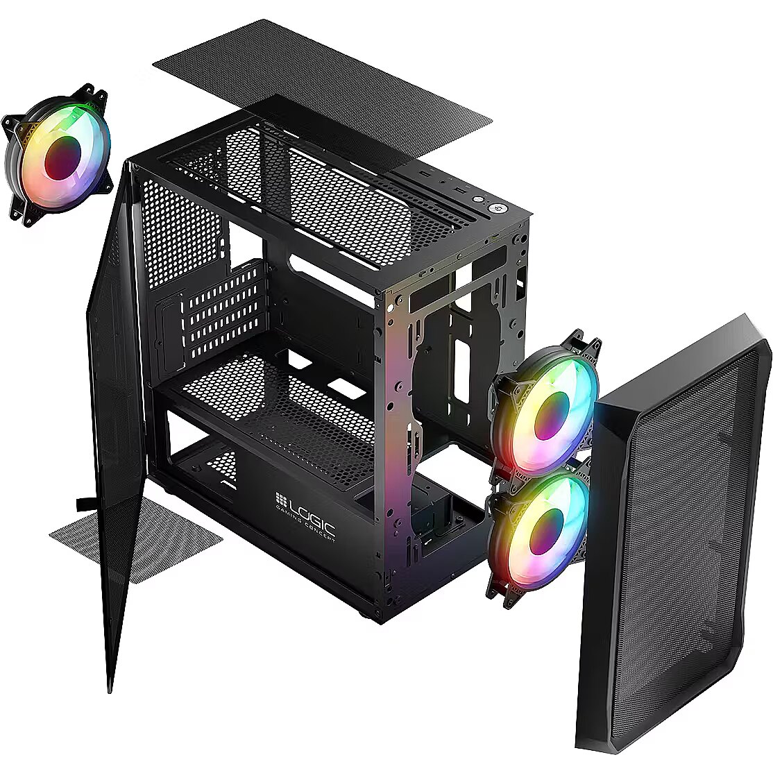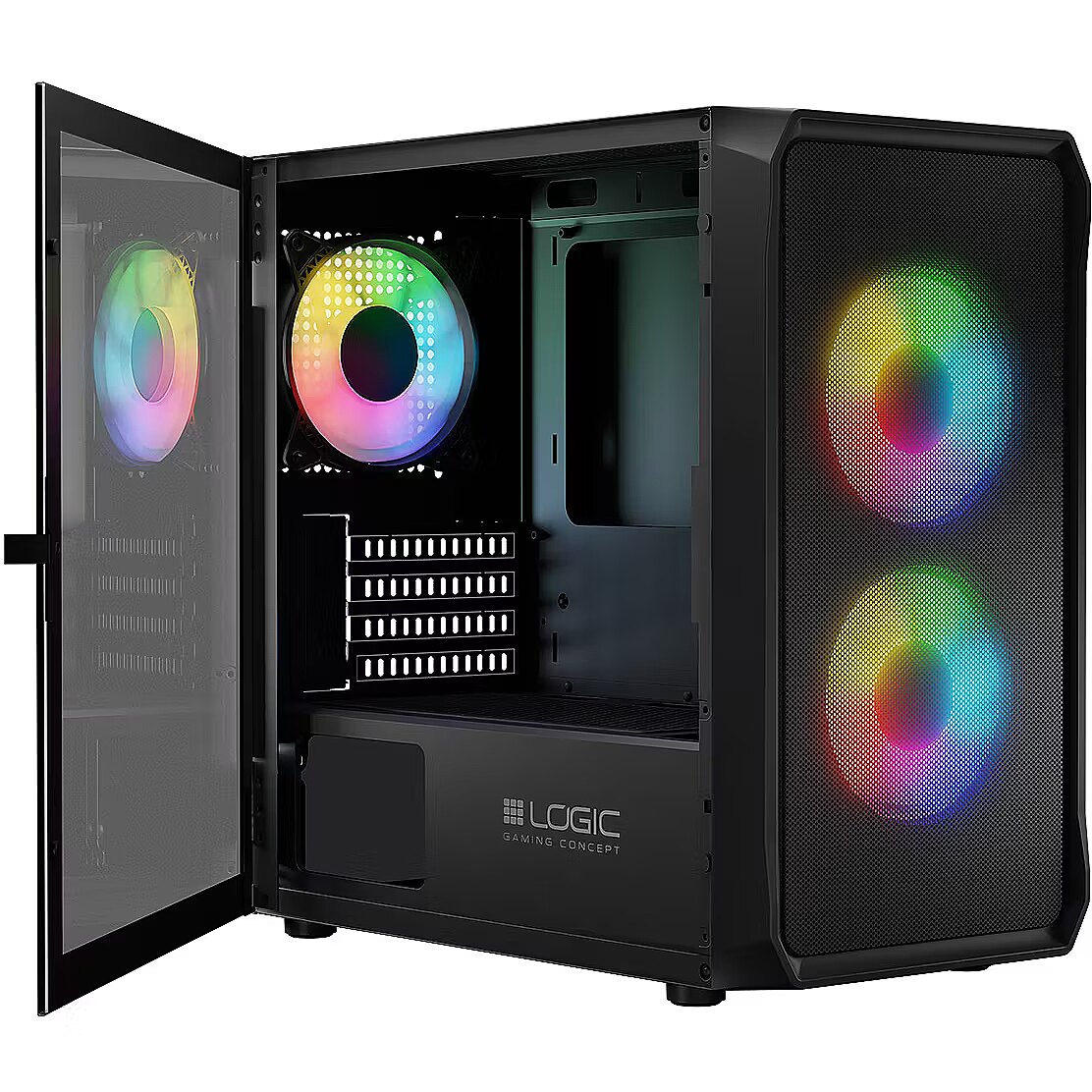 Description - Portos ARGB Mini Black Logic Portos ARGB Mini is a chassis created to build a powerful and modern gaming PC. WHEN IT'S THE INSIDE THAT COUNTS... Are you building a computer for gaming? And you want it to not take up too much space on your desk? Then of course you need a well-thought-out, well-designed and good-looking MINI ATX-sized case. Preferably still one with three mounted ARGB fans, an airy front and top, dust filters, and the side panel was made into a tempered glass door. This is where Case Logic Concept Portos ARGB MINI comes to the rescue. A concrete competitor for gaming tasks, providing good airflow, component culture, their safety and low temperatures of installed components. OPEN YOURSELF TO NEW A side panel made of tempered glass in the form of a hinged door makes it easier not only to install components, but also to keep the computer clean. Just open the door and clean the center with compressed air. Isn't it simple and practical? It's the only one we want to give you, because they simply belong to you. TO HOT COMPONENTS SAY "NO" An airy front and top panel significantly facilitates air circulation. Two 120 mm fans on the front and one 120 mm fan on the back Cases effectively cool the heated components. All for your comfort and the safety of your computer. Always willing to play Logic PORTOS ARGB MINI is a case created to build an efficient and modern gaming PC. Optimal airflow, practical solutions and pre-installed ARGB fans make up its gaming character. READY FOR GAMING COMPONENTS The ability to mount graphics cards up to 340 mm and a maximum CPU cooling height of 155 mm allows the installation of most high-performance components available on the market. PROTECT YOUR COMPUTER FROM DUST DUST FILTERS A dust filter has been placed under the power supply unit. It minimizes the amount of dust sucked in by the PSU's fan, positively affecting its operating temperature and service life. An additional filter is located on top of Cases. This effectively traps unwanted dust and protects the installed components. It protects against dust that enters the computer by gravity throughout the day, even when the computer is turned off. All the effective protection is complemented by mesh mesh on the front panel. OPTIMAL AIR CIRCULATION The ventilated front panel provides airflow with two, efficiently operating 120 mm fans. The back of Cases , on the other hand, features one pre-installed 120 mm fan This allows you to effectively cool the installed components of the computer's interior, positively influencing the culture of their operation and service life. As an option, it is possible to mount two 140 millimeter fans on the front of Cases in place of the factory-installed ones and two 120 or 140 millimeter fans on the top on their own. Case It is also adapted for installation of water cooling. ARGB BEAUTY Case for gamers must look nice. That's why the pre-installed ARGB fans add beauty to the case and the gaming stand. The color of the backlight can be changed at will from the predefined settings using the button on the control panel Cases. Convenient access to the top panel Convenient access to the top panel, and there are two USB 2.0 and one USB 3.0 connectors, plus one minijack connector for headphones and microphone, a power button and a button to control the fan backlight. SIMPLE INSTALLATION Everything here is well thought out and intuitive. Building a computer in this case is a pleasure and is child's play. POWER SUPPLY A gaming computer must have a good and powerful power supply. That's why we made sure that it has a home here! The maximum length of the power supply with the disk cage installed is 200 mm. A dust filter has been placed under the power supply, which effectively protects the operation of the power supply from dust 4 PCIe expansion card slots Four slots for PCIe expansion cards. This is the optimal number for mounting, among other things, a graphics card and a network card. SPACE FOR GAMES IN ABUNDANCE The mounting of HDD or SSD drives is obviously thought out here as well. Inside Cases at tunnel level there is a basket for 3.5" or 2.5" drives. On the motherboard tray, on the other hand, it is possible to mount an additional 2.5" drive. A total of 2 SSDs and 1 HDD or 1 SSD and 2 HDDs can be installed.