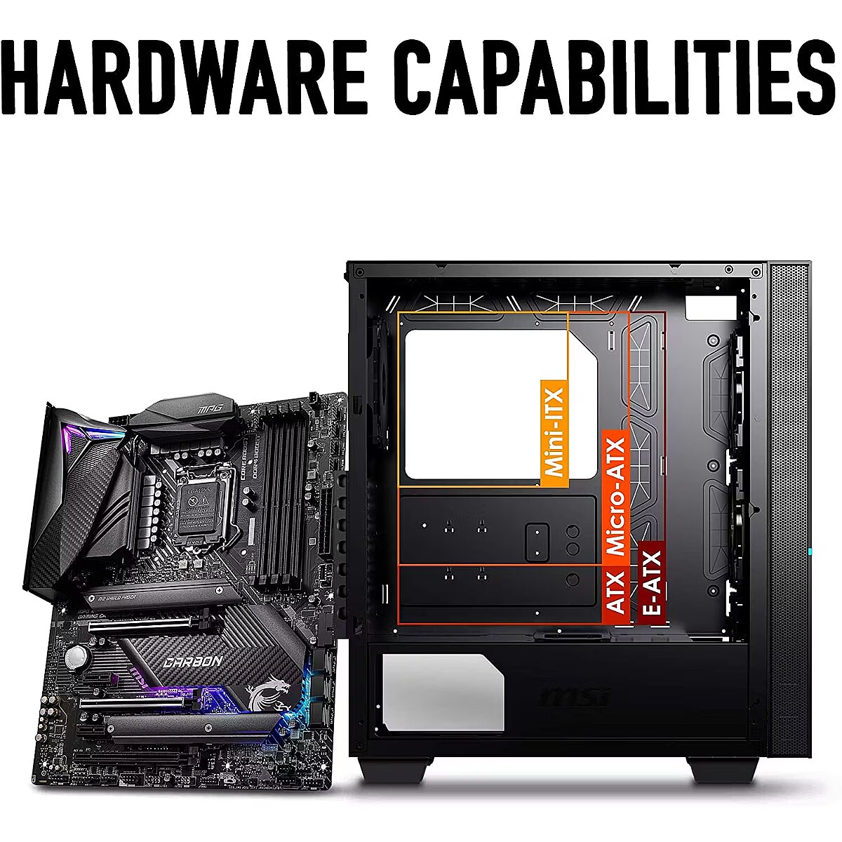 ShortSummaryDescription - MSI MPG SEKIRA 100R 'S100R' Mid Tower Gaming Computer Case 'Black, 4x 120mm ARGB, Mystic Light Sync, 8 Channel ARGB Hub, USB Type-C, Tempered Glass Panels, ATX, mATX, mini-ITX', Desktop, PC, Black, ATX, EATX, micro ATX, Mini-ITX, Gaming, Blue, Green, Red