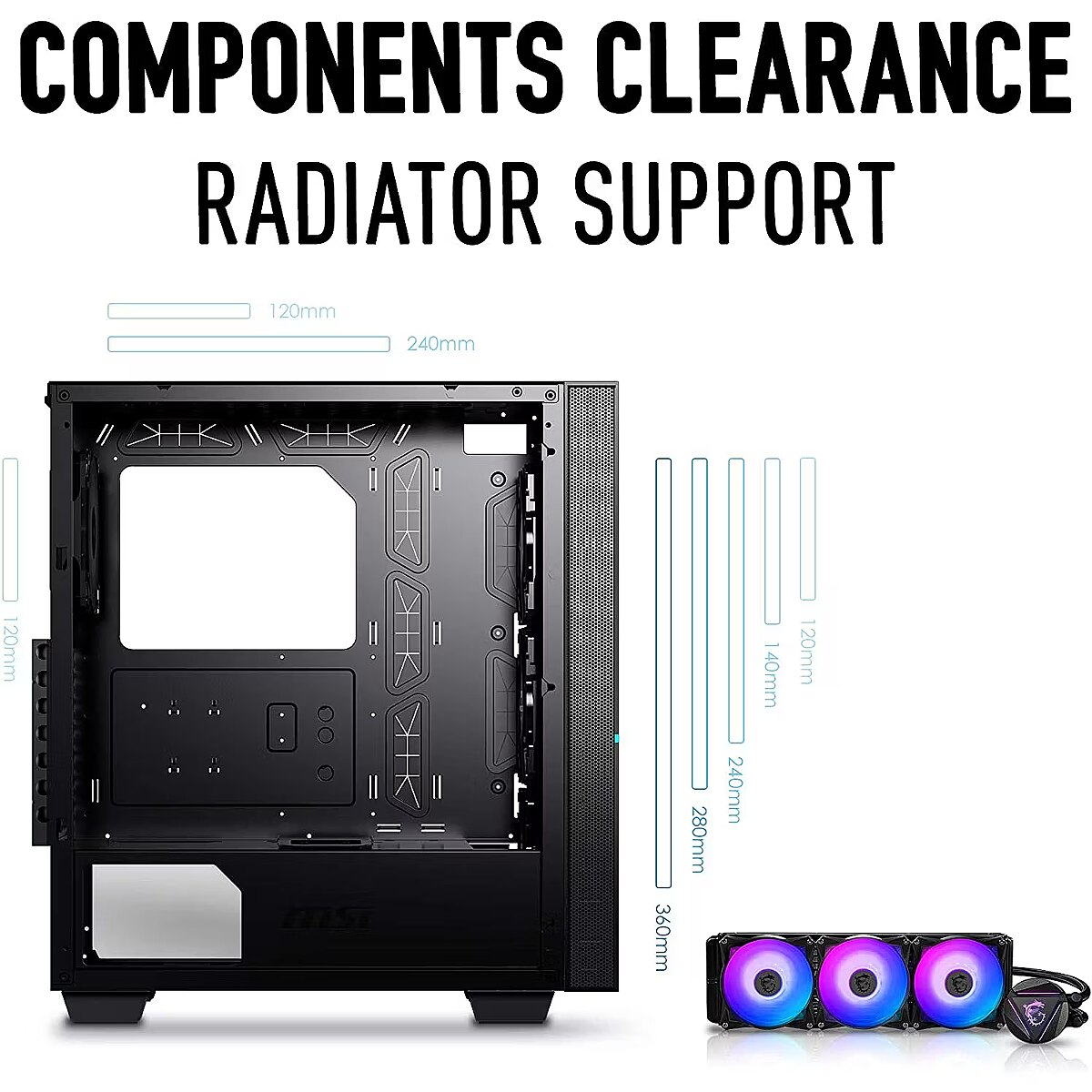 ProductName - MPG SEKIRA 100R 'S100R' Mid Tower Gaming Computer Case 'Black, 4x 120mm ARGB, Mystic Light Sync, 8 Channel ARGB Hub, USB Type-C, Tempered Glass Panels, ATX, mATX, mini-ITX'