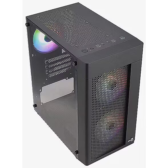 ShortSummaryDescription - Aerocool HEXFORMBKV2 Micro ATX PC Case 3 Fans FRGB Black, Mini Tower, PC, Black, micro ATX, Mini-ITX, ABS, SPCC, Back, Front