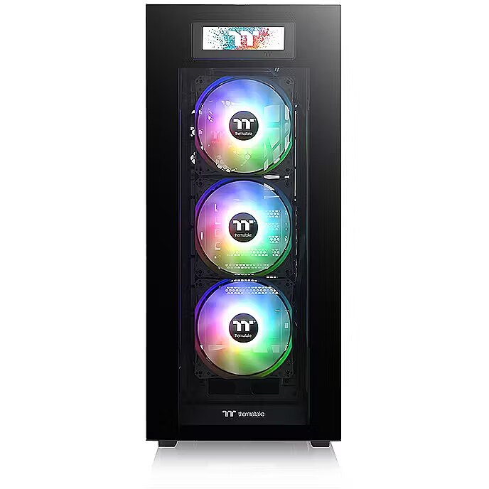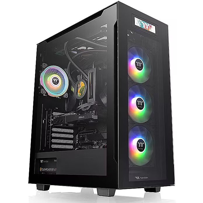 Technical_details - Type: Tower case Color: Black EAN: 4713227530835 Manufacturer No.: CA-1T7-00M1WN-00 Design: midi tower Motherboard form factor: ATX Window Kit: Yes Internal dimensions: maximum 390 mm : maximum 170mm : ATX : maximum 220mm Drive bays: 2 pieces : 5 pieces : 2 pieces Slots: 7 pieces Front connectors: 1x audio, 2x USB-A 3.2 Gen 1 (5 Gbps), 1x USB-C 3.2 Gen 2 (10 Gbps) : The designation USB 3.2 Gen 1 corresponds to the former designation USB 3.1 Gen 1 / USB 3.0. : The designation USB 3.2 Gen 2 corresponds to the former designation USB 3.1 Gen 2 / USB 3.1. Front: 3x 120 mm ARGB fans available (1,000 rpm, 27.2 dB(A)), alternatively 3x 140 mm fans can be installed Rear: 1x 120 mm fan available (1,200 rpm, 22 dB(A)) Notes: 3x Tempered Glass (3 mm), 2x 140 mm or 2x 120 mm fans can be installed on the top, 1x 120 mm fan can be installed on the right side (M/B Side). Lighting: Yes, RGB RGB connectors: addressable RGB headers RGB Standard: AURA Sync, Mystic Light, RGB Fusion, RGB LED Water cooling possible: Yes : Front: up to 360 mm or 1x 240 mm or 1x 120 mm, up to 1x 280 mm, right: 1x 240 mm (vertical GPU installation recommended), rear: 1x 120 mm Additional information: TFT-LCD display on the front panel, rotatable PCIe slots Note: VGA length limit: 360 mm with radiator, 390 mm without radiator, PSU length limit: 180 mm with HDD cage, 220 mm without HDD cage Dimensions: Width: 230mm x Height: 530mm x Depth: 466mm
