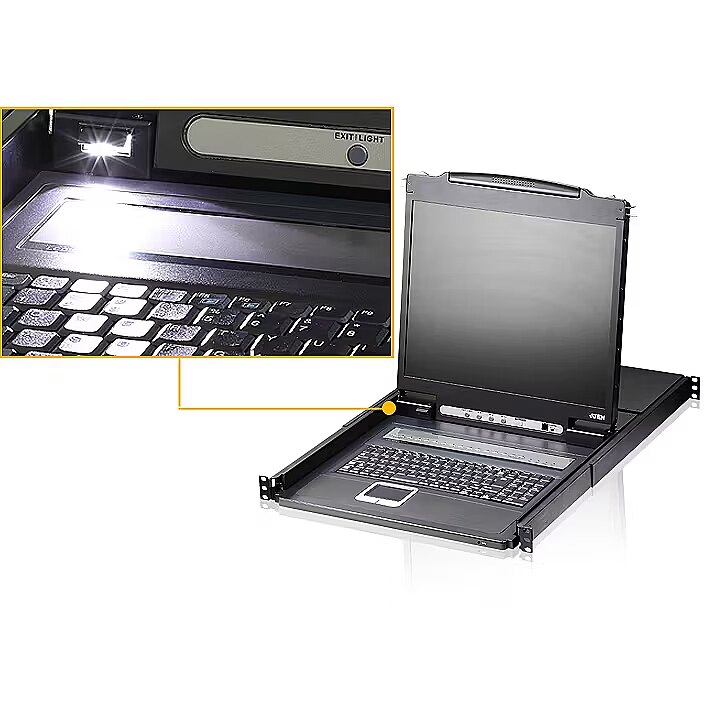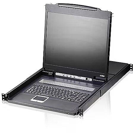 LongDesc - With limited server room space and rising maintenance costs, network administrators are now more than ever looking for solutions that reduce both costs and space requirements. ATEN LCD KVM Switches offer a space saving, streamlined approach to KVM switching technology by integrating an LCD panel, full keyboard, and touchpad into a 1U rack-mountable sliding housing.The CL1308 LCD KVM Switch features an integrated 19" LED-backlit LCD panel allowing access and control with up to 8 computers from a single console (keyboard, mouse, and monitor). As many as 8 additional switches can be cascaded bringing the total number of connected computers to 128 computers that can be controlled from a single keyboard-monitor-mouse console.Setup is fast and easy; plugging cables into their appropriate ports is all that is needed. The switch supports both USB and PS/2 connections for the computers. The CL1308 intercepts keyboard input directly, thus eliminating the need for any software configuration. Switching between computers can be easily accomplished either by manually pressing the front panel push button port LEDs, entering hotkey combinations from the keyboard, or via a menu driven multilingual on-screen display (OSD) system.Note: Optional rack mount kits are available. For more information, refer to Compatible Accessories below.