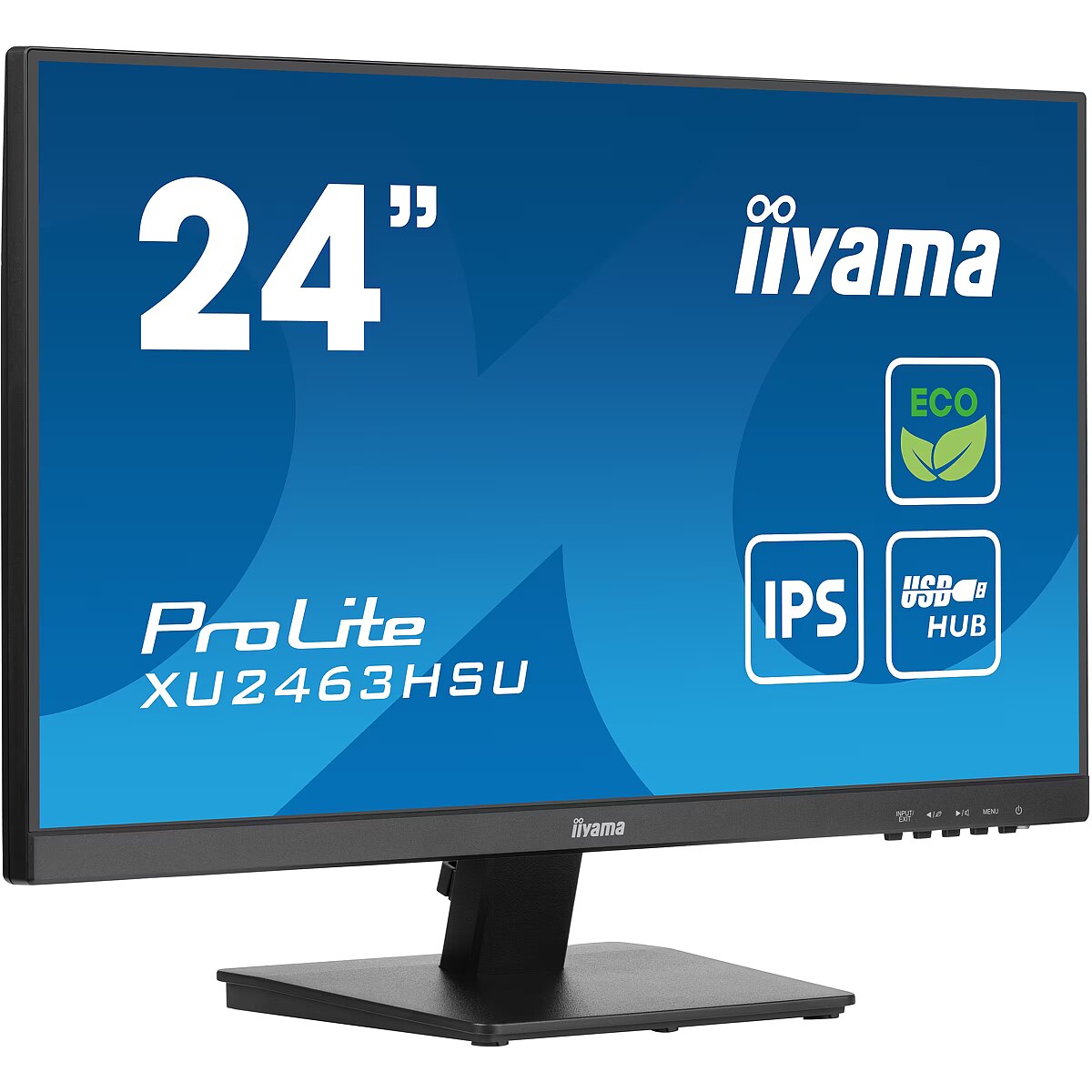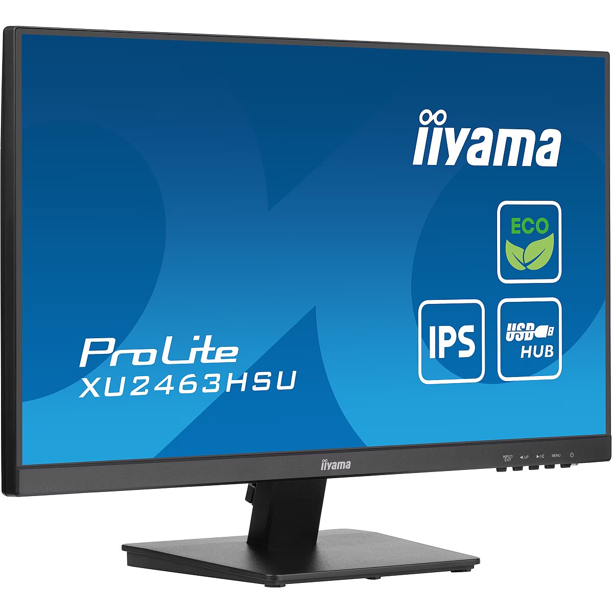 LongSummaryDescription - iiyama ProLite XU2463HSU-B1. Display diagonal: 60.5 cm (23.8"), Display resolution: 1920 x 1080 pixels, HD type: Full HD, Display technology: LED, Display surface: Matt, Response time: 1 ms, Native aspect ratio: 16:9, Viewing angle, horizontal: 178°, Viewing angle, vertical: 178°. Built-in speaker(s). Built-in USB hub, USB hub version: 3.2 Gen 1 (3.1 Gen 1). VESA mounting. Product colour: Black