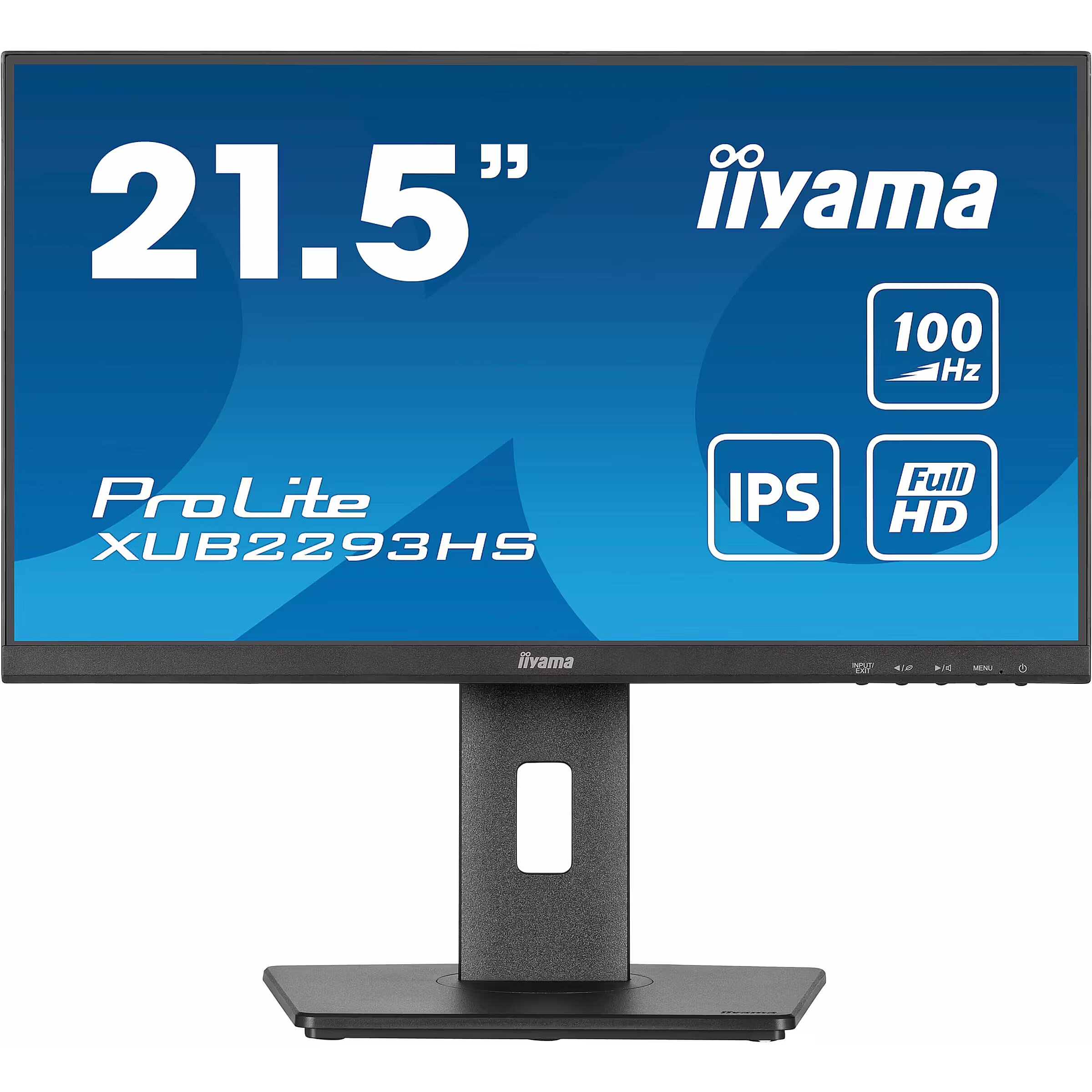 LongSummaryDescription - iiyama ProLite XUB2293HS-B6. Display diagonal: 54.6 cm (21.5"), Display resolution: 1920 x 1080 pixels, HD type: Full HD, Display technology: LED, Display surface: Matt, Response time: 1 ms, Native aspect ratio: 16:9, Viewing angle, horizontal: 178°, Viewing angle, vertical: 178°. Built-in speaker(s). VESA mounting, Height adjustment. Product colour: Black