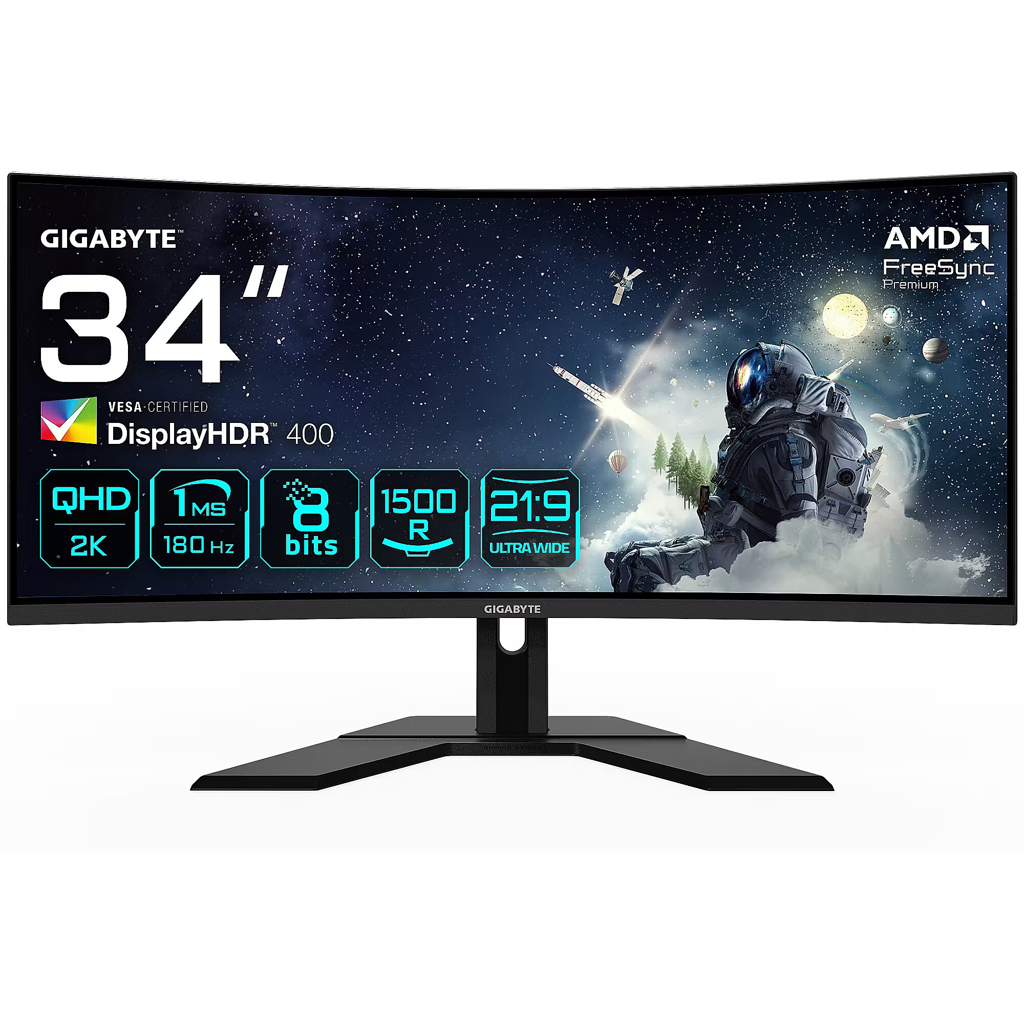 productName - GIGABYTE G34WQCP 34" UWQHD Curved Gaming Monitor - 3440 x 1440, 1500R, 180Hz, 1ms, 350 cd/m2, AMD FreeSync Premium, DisplayHDR 400, HDMI 2.0, Displayport 1.4