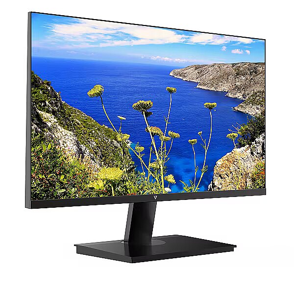 LongDesc - The V7 23.8-inch FHD IPS LED monitor offers a vibrant 1920x1080 resolution for clear and detailed visuals. The IPS panel delivers wide viewing angles with accurate colors, while the 16.7 million colors bring images to life. Equipped with FreeSync technology, the monitor eliminates screen tearing and stuttering for smooth gameplay. With a bright 250 nit brightness and a fast 5ms response time, it handles demanding tasks with ease. The 100 Hz refresh rate provides fluid motion, making it ideal for gaming and multimedia. Connectivity options include HDMI, VGA, and DisplayPort, ensuring compatibility with various devices. Built-in speakers add convenience, while the sleek design complements any workspace.23.8" FHD 1920 X 1080 IPS LED MONITORVERSATILE CONNECTIVITYWith the added DisplayPort, easily set up a dual-monitor configuration to maximize your workspace.CONNECTIVITYOur monitors are equipped with both HDMI and DisplayPort, ensuring seamless connectivity to a wide range of devices.Versatile Monitor with HDMI and DisplayPort.