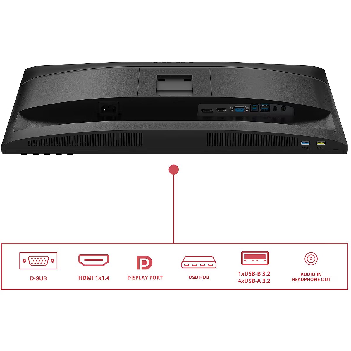 Summary - AOC 24E4U. Display diagonal: 60.5 cm (23.8"), Display resolution: 1920 x 1080 pixels, HD type: Full HD, Display technology: LED, Response time: 4 ms, Native aspect ratio: 16:9. Built-in speaker(s). Built-in USB hub, USB hub version: 3.2 Gen 1 (3.1 Gen 1). VESA mounting, Height adjustment. Product colour: Black
