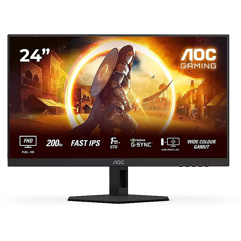 Summary - AOC G4 24G4HRE. Display diagonal: 60.5 cm (23.8"), Display resolution: 1920 x 1080 pixels, HD type: Full HD, Display technology: LED, Response time: 1 ms, Native aspect ratio: 16:9, Viewing angle, horizontal: 178°, Viewing angle, vertical: 178°. Built-in speaker(s). VESA mounting, Height adjustment. Product colour: Black, Red