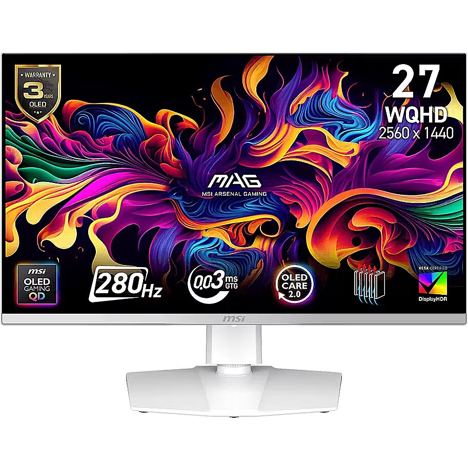 LongDesc - Visualize your victory with the MAG 272QPW QD-OLED X28 gaming monitor. It boasts a 2560x1440 (WQHD) QD-OLED panel, 280Hz refresh rate, and rapid 0.03ms (GtG) response time. VESA certification for ClearMR 15000 and DisplayHDR True Black 400 ensures exceptionally vivid images and mitigates motion blur. OLED Care 2.0 reduces OLED burn-in risks. For console gamers, the MAG 272QPW QD-OLED X28 provide HDMI™ 2.1 ports with 48Gbps bandwidth, 120Hz support, VRR, and ALLM.MSI's mainstream MAG series epitomizes stability and durability and is built to withstand the most intense gaming sessions. The entire lineup features robust construction with metallic-like hardness and excellent heat dissipation, ensuring stability for all critical gaming components.3-YEAR OLED WARRANTYMSI recognizes the significance of providing extensive support, allowing our users to enjoy their gaming experience worry-free. We offer a 3-year warranty for OLED panels, exceeding standard coverage by including safeguards against the OLED burn-in issue.Intricately detailed visuals and clearly defined textNew QD-OLED series gaming monitor features the latest generation QD-OLED panels. The sub-pixel arrangement improves your viewing experience, providing sharper images, finer details, and clearer text.ASPECT RATIO OPTIONSSupports a variety of aspect ratios, allowing selection of 24.5” imagery. Choose the size you want at your leisure, and elevate your gaming experience to the utmost.OLED Care 2.0MSI understands your concerns, which is why we offer MSI OLED Care. This solution provides a range of screen protection optimization mechanisms, it containes three parts (Pixel Shift, Panel Protect, Static Screen Detection). Now, MSI developed a more advanced version to provide several care services and significantly reduce the chances of OLED screen burn-in.
