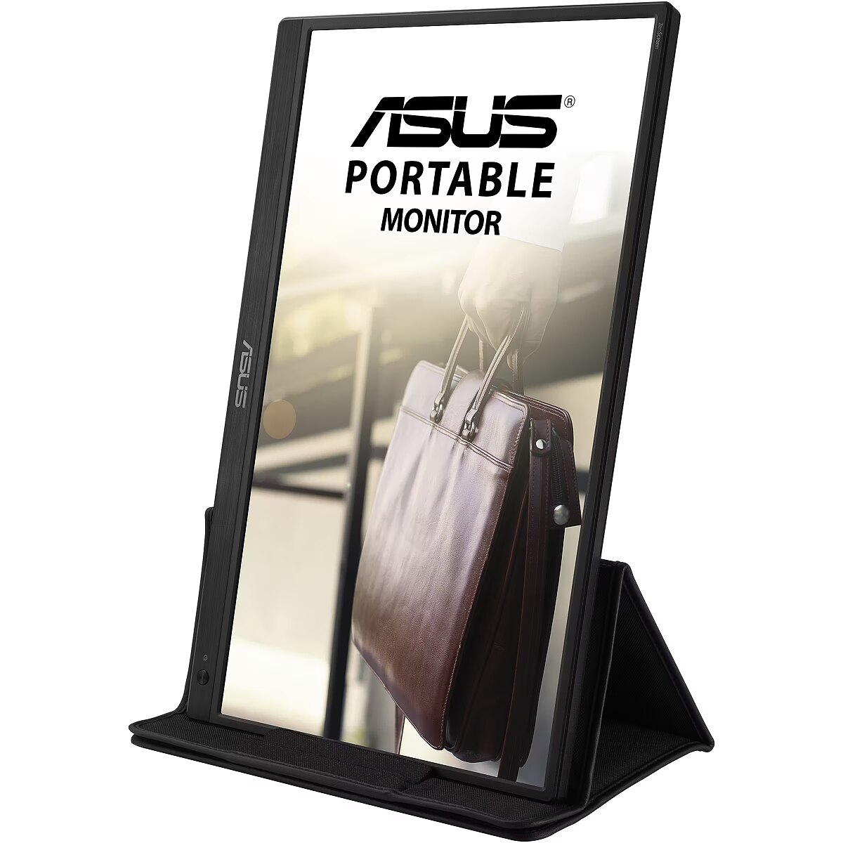 LongDesc - Sleek and portable designASUS ZenScreen MB165B is ideal for life on the road. This sleek portable display weighs just 0.78kg and has an 11.8 mm slim profile, so it fits easily in any travel bag and is ready for productivity, anytime and anywhere.One cable is all you needZenScreen MB165B portable USB-powered monitor needs just one USB cable for both its video signal and power, to be fully compatible with almost any laptop.Work in comfortA ¼”-threaded hole at the rear of the monitor lets you to attach ZenScreen MB165B to a conventional tripod or table-mount easily.Work efficiently in portrait and landscape modesWith ASUS DisplayWidget software, ZenScreen MB165B can automatically sense its orientation and switch the display between landscape and portrait modes while connected to your laptop. Landscape mode is ideal for presentations and spreadsheets, while Portrait mode gives you a perfect view of items such as documents, books or websites.