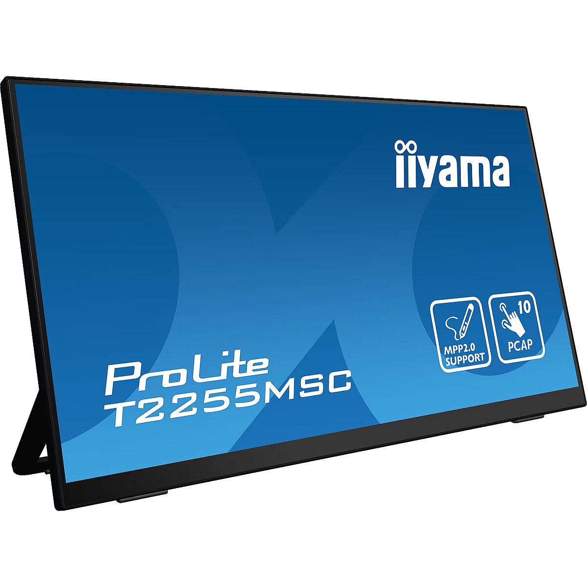 LongSummaryDescription - iiyama ProLite T2255MSC-B1. Display diagonal: 54.6 cm (21.5"), Display resolution: 1920 x 1080 pixels, HD type: Full HD, Display technology: LCD, Response time: 5 ms, Native aspect ratio: 16:9, Viewing angle, horizontal: 178°, Viewing angle, vertical: 178°. Built-in speaker(s). Built-in USB hub, USB hub version: 3.2 Gen 1 (3.1 Gen 1). VESA mounting. Product colour: Black