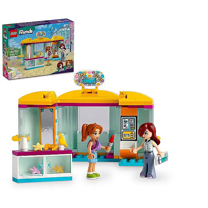 Description - Give creative kids a treat with this LEGO Friends Tiny Accessories Shop (42608) building toy for girls, boys and kids aged 6 plus. Kids who love toy beauty shops will enjoy helping Paisley and Candi shop for a new bumbag and hair accessories. Kids can act out the story as the characters use the mirror to check out their new look, then pay using their smartphones at the self-service checkout. This playset makes a fun gift for 6-year-old and over girls, boys and kids. The set comes with LEGO Friends Paisley and Candi mini-dolls so play can start right away. Fun accessories include 2 bumbags for the characters to wear. Discover a range of role-play toys for kids in the LEGO Friends universe, where young builders can enjoy creative play and act out real-life adventures. This small LEGO set comes with the LEGO Builder app for an easy and intuitive building adventure. Here kids can zoom in and rotate models in 3D, save sets and track progress. LEGO Friends Tiny Accessories Store building toy set Includes a buildable store, 2 mini-dolls and beauty shop accessories for girls, boys and kids aged 6 plus Includes 2 mini-dolls Kids can act out different friendship stories as they role-play shopping adventures with the LEGO Friends Paisley and Candi mini-doll characters Lots of accessories This role-play toy for kids comes with 2 fanny packs for the characters to wear and other beauty-themed accessories Mirror and self-service checkout The store opens to reveal the interior, where theres a mirror and a self-serve checkout for kids to act out the story A gift idea for kids This creative LEGO Friends set for girls and boys makes a fun birthday gift or anytime treat for kids who love imaginative play and role-play toys Inspire friendship play Discover more sets (sold separately) in the LEGO Friends range of building toys for kids, where your child can explore different friendship stories Measurements This LEGO toy measures over 3.5 in. (9 cm) high, 5.5 in. (14 cm) wide and 2.5 in. (6 cm) deep and the set comprises 129 pieces