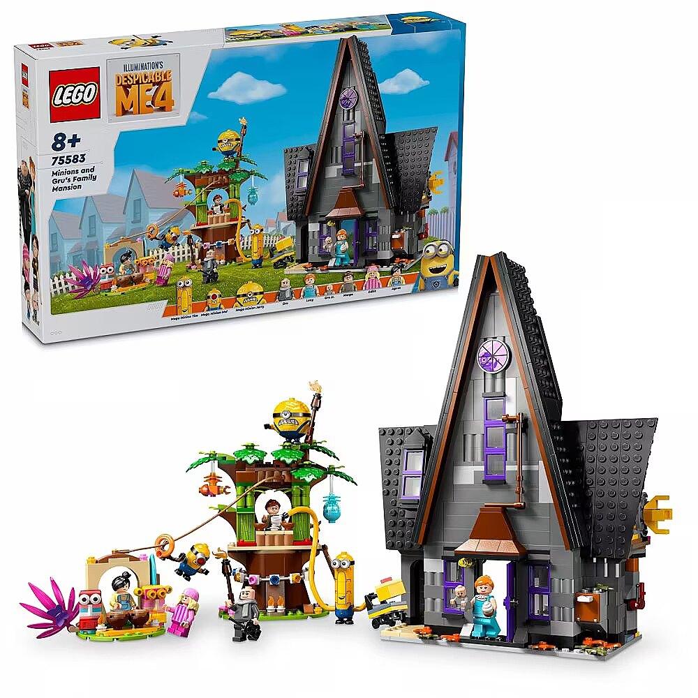 Description - Bring Minion movie fun to life with LEGO Despicable Me 4 Minions and Gru's Family Mansion (75583) toy house and tree house playset. This buildable Minions movie toy for kids aged 8+ is filled with details to delight every fan of Despicable Me. Grus iconic house contains well-known movies items, such as the red couch, fireplace, rocket-style bedroom, the Minions laboratory filled with gadgets and rotating units containing objects such as a toilet and a cookie storage box. Next to the house is the girls brightly colored tree house, which features a dining area with a zip line running down to the party space (complete with bongos!) and a decorated hideaway beneath the platform with flowers, toys and candles. There are 6 minifigures Gru, Lucy, Margo, Edith, Agnes and Baby and 3 large, buildable Minion toy figures: Mel, Jerry and Tim. This house playset is bursting with fun to explore, and with so many characters and accessories, this cool toy for kids is the perfect Minion gift. Toy house and tree house playset LEGO Despicable Me 4 Minions and Gru's Family Mansion kids playset is packed with authentic movie details and characters for girls and boys aged 8+ Movie toys for kids Includes a buildable house playset and small toy tree house, 6 minifigures, 3 buildable Minion toy figures and lots of authentic accessories Gru and Minion house playset This versatile toy is bursting with rooms to explore, characters to meet and imaginative adventures for kids to discover Grus family and Minion characters Meet Gru, Lucy, Margo, Edith, Agnes and Baby, plus Mega Minion toy figures Mel, Jerry and Tim Minion gift idea Fans of Illuminations Despicable Me movies will recognize Grus house and the many features and characters contained within, making it a fun Minions gift for kids 3D building instructions Kids can download the LEGO Builder app for an immersive building experience, with digital tools to zoom in and rotate models in 3D, save sets and track progress More Minion toys for kids There are additional LEGO Despicable Me 4 playsets available (sold separately) for kids who want to collect, combine and customize the Minions fun 868-piece playset Grus house alone measures over 10.5 in. (27 cm) high, 8.5 in. (21 cm) wide and 4.5 in. (11 cm) deep