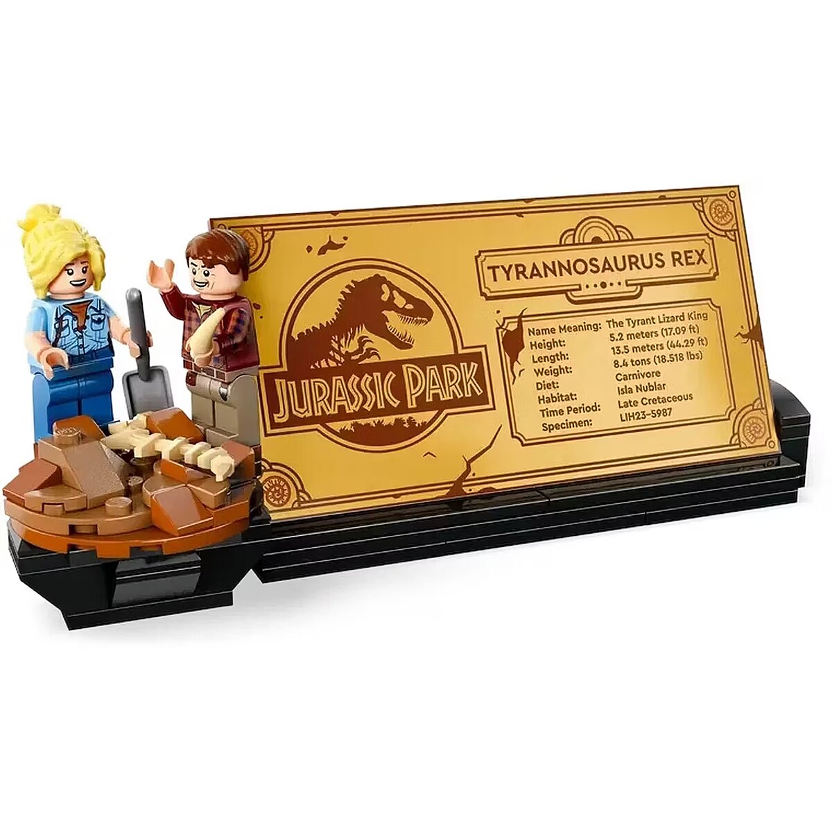 Description - Dinosaur Fossils: Tyrannosaurus rex Share your love for dinosaurs with an impressive build worthy of displaying proudly in this Dinosaur Fossils: Tyrannosaurus rex (76968) building set. This collectible LEGO Jurassic World dinosaur model features a 1:12-scale T. rex fossil skeleton with movable joints, including the skull, jaw, posable arms and tail. There's an information plaque that can be attached to the display stand, hidden dig-site Easter eggs that include an 'amber' piece, and 2 minifigures from the 1993 Jurassic Park film: Ellie Sattler and Alan Grant. The range of LEGO Jurassic World sets make great nostalgic gifts for other adult dinosaur fans or treats for yourself - whether you want to recreate classic film scenes or build and display an impressive dinosaur model to share your passion. Plus, you can enjoy an intuitive building experience with the LEGO Builder app, where you can zoom in and rotate models in 3D, track progress and save all your sets in one place. Dinosaur model building set - Give yourself or another adult dinosaur fan a more challenging build and a special display piece with this Dinosaur Fossils: Tyrannosaurus rex set T. rex fossil display for adults - Features a Tyrannosaurus rex fossil model with articulated joints, a stand, a plaque and hidden dig-site Easter eggs including an 'amber' piece and 2 minifigures Posable LEGO Jurassic World collectible - With a movable head, opening jaw and posable hands and tail, this T. rex fossil skeleton can be positioned and repositioned into dynamic poses Curated details - The collectible building kit includes hidden Easter eggs, an information plaque that connects to the stand or stands on its own, plus 2 minifigures from 1993 hit film Jurassic Park Nostalgic gifts for adults - With 3,145 pieces, a challenging build and intricate details, this LEGO Jurassic World set is made for adult dinosaur-lovers and will make a great display gift High-quality building instructions - As well as a step-by-step guide to constructing the model, the coffee-table-style instructions include design details, film highlights and T. rex dinosaur facts Immerse yourself - Enjoy every step of your build with the LEGO Builder app, which lets you zoom in and rotate your models in 3D, track your progress and save all your sets in one place Building kit dimensions - Relive thrilling memories of the original hit film Jurassic Park with this 3,145-piece T. rex skeleton dinosaur model set that stands over 33 cm (12.5 in.) high