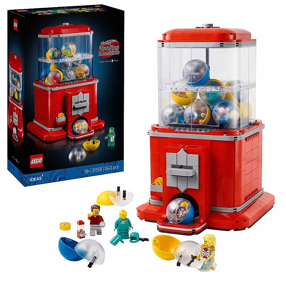 Description - Cofnij się do prostszych czasów i stwórz ozdobę w stylu retro dzięki zestawowi Maszyna z minifigurkami (21358). Ten zestaw LEGO Ideas to wspaniały kreatywny prezent dla mężczyzn, kobiet i miłośników sztuki oraz designu retro. Sprawdź swoje umiejętności i odtwórz funkcje klasycznego automatu. Zbuduj i wyeksponuj swoje dzieło, włóż monetę LEGO do otworu i przekręć uchwyt, aby uwolnić jedną z 16 kapsuł - uchwyt klika po przekręceniu, zupełnie jak w prawdziwej maszynie! W każdej kapsule znajdziesz elementy do zbudowania kolekcjonerskiej minifigurki LEGO, w tym cztery wybrane w ankiecie fanów LEGO Ideas. Wśród nich są minifigurki oddające hołd klasycznym seriom LEGO i podseriom, takim jak Castle, Paradisa i Fabuland, a także minifigurki projektanta tego zestawu, odkrywców kosmosu i innych. W budowaniu pomogą Ci instrukcje budowania, które znajdziesz w pudełku lub intuicyjnej aplikacji LEGO Builder, w której możesz obejrzeć cyfrową wersję 3D swojego modelu. Zestaw zawiera 1343 elementy. Ozdoba w stylu retro - przywołaj nostalgiczne wspomnienia dzięki temu zestawowi konstrukcyjnemu LEGO Ideas dla dorosłych, który zawiera w pełni funkcjonalną maszynę z minifigurkami do zbudowania Realistyczny mechanizm automatu - włóż monetę LEGO do otworu, przekręć uchwyt, aby uwolnić kapsułę i odkryj elementy do zbudowania minifigurki LEGO w każdej z nich Unikalny, satysfakcjonujący model - znajdź chwilę i odpręż się przy tym kreatywnym wyzwaniu, wykorzystując sprytne techniki budowania LEGO, aby odtworzyć wygląd i funkcje klasycznej maszyny z minifigurkami 16 kolekcjonerskich minifigurek LEGO - zbuduj minifigurki nawiązujące do różnych klasycznych serii i podserii LEGO, w tym Castle, Paradisa, Fabuland i innych Prezent dla mężczyzn, kobiet i wszystkich miłośników sztuki retro - spraw sobie prezent lub podaruj ten zestaw konstrukcyjny LEGO innym kreatywnym dorosłym, którzy uwielbiają sztukę retro, design, zestawy LEGO i minifigurki Instrukcje budowania w 3D - ciesz się każdym etapem budowania dzięki aplikacji LEGO Builder, która umożliwia powiększanie i obracanie modelu w 3D, śledzenie postępów i zapisywanie wszystkich zestawów w jednym miejscu Wybór fanów LEGO - ten zestaw LEGO dla dorosłych jest częścią serii zestawów LEGO Ideas stworzonych przez fanów, wybranych głosami miłośników LEGO oraz wyprodukowanych przez Grupę LEGO Wymiary - maszyna z minifigurkami do zbudowania w tym 1343-elementowym zestawie ma 28 cm wysokości, 17 cm szerokości i 21 cm głębokości