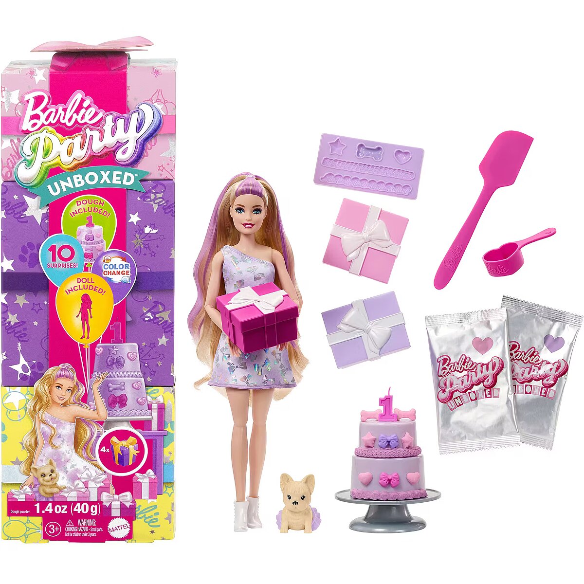 Mattel Barbie Barbie Party Unboxed Pet Birthday Series - purple dress, doll