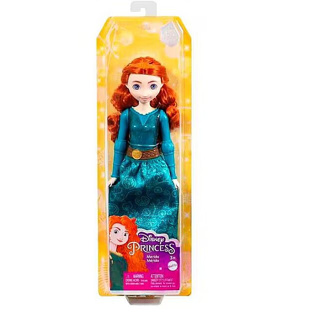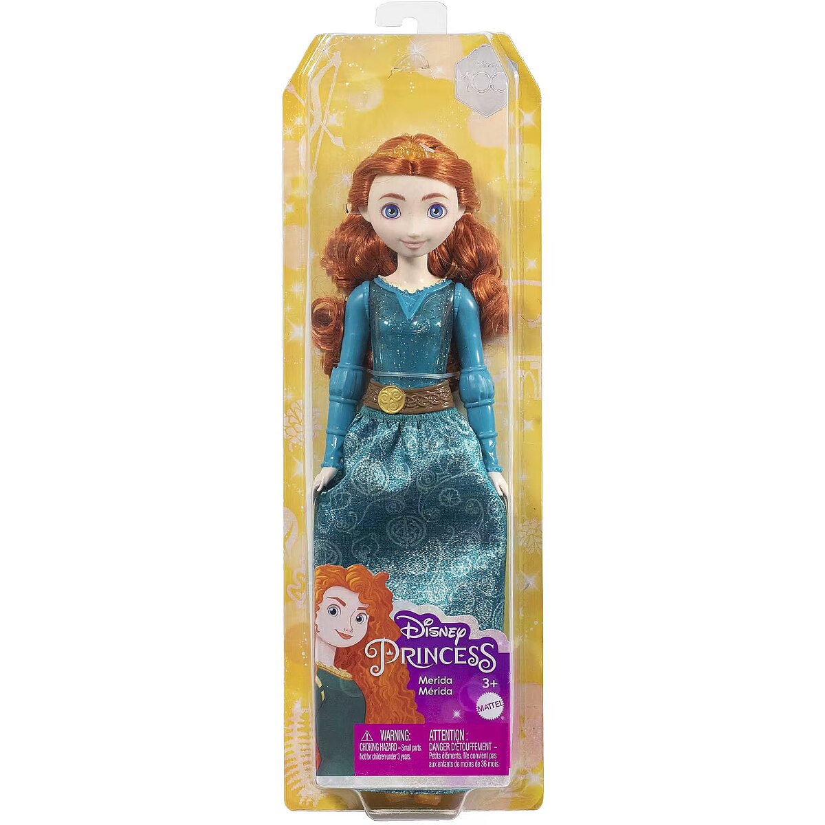 LongDesc - Meet this Disney Princess Merida doll, inspired by the confident and determined heroine from Disney and Pixar's Brave movie! This posable fashion doll is shown in a sparkling outfit and accessories that include shoes and a tiara. In her signature look inspired by the movie, this Merida doll is ready for any adventure! Doll cannot stand alone. Colours and decorations may vary.
