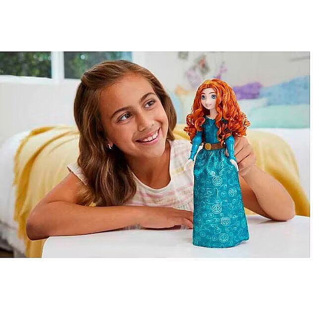 Description - Meet this Merida doll, inspired by the confident and loyal princess from Disney and Pixar's Brave! This posable fashion doll is shown in a sparkling outfit and accessories that include shoes and a tiara. In her signature look from the movie, this Merida doll is ready for any adventure! Doll cannot stand alone. Colors and decorations may vary. Inspired by the animated character in the beloved Disney and Pixar movie Brave, this Merida doll is ready to change her fate! This posable fashion doll wears her signature fashion from the movie, including removable shoes and tiara. Her outfit includes a glitter top and removable skirt with a storytelling pattern unique to Merida. This Disney Princess doll features long hair for styling and brushing fun! Makes a perfect gift for kids to play out their favorite movie moments or make up their own adventures! Fans can collect all the Disney Princess fashion dolls for the ultimate adventure! Each sold separately, subject to availability.