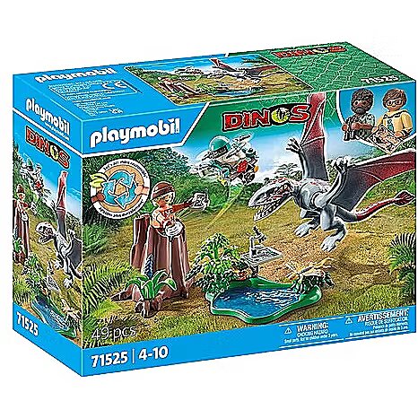 Description - At the same time as the dimorphodon, the drone takes off from the observation station and follows its trajectory. At the pond, water samples are examined and the feeding behaviour of the dinosaur is observed. Includes a dinosaur knowledge card. Step into the world of dinosaurs with the Observatory for Dimorphodon from PLAYMOBIL. Hidden snugly within his hollow tree stump, the dino researcher observes the Dimorphodon while it searches for food. Using his flexible drone with a camera, he captures close-up shots without disturbing the large flying reptile. Later, he conducts further research with the microscope. What a successful day of exploration! The PLAYMOBIL Dinosaur World invites children aged 4 and up to dive into exciting role-playing adventures and relive the fascination of these giant reptiles at home. Specifications: Cool PLAYMOBIL Dinosaur set featuring a PLAYMOBIL figure, a Dimorphodon, a flying reptile, a drone with a camera, a microscope, a pond with plants, and many other fantastic extras. The dinosaur figure can move its arms, legs, and head and has an articulated jaw. The wings of the flying reptile can rotate in all directions. Includes a knowledge card with fascinating dinosaur facts. All PLAYMOBIL Dino World sets are made of over 80% recycled and bio-based materials.