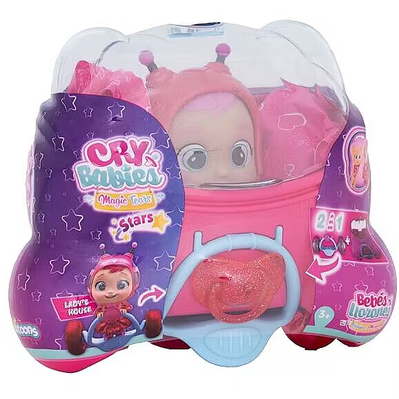 Description - Cry Babies Magic Tears Stars Houses Doll, Sydney The 2-in-1 capsule is not only an adorable doll's house, but also a vehicle that will provide unforgettable moments of fun.  The Stars Houses Lady is one of three houses available. The others are the Coney house and the Lady house. Each hides unique surprises that will delight both small and large fans of Cry Babies Magic Tears.