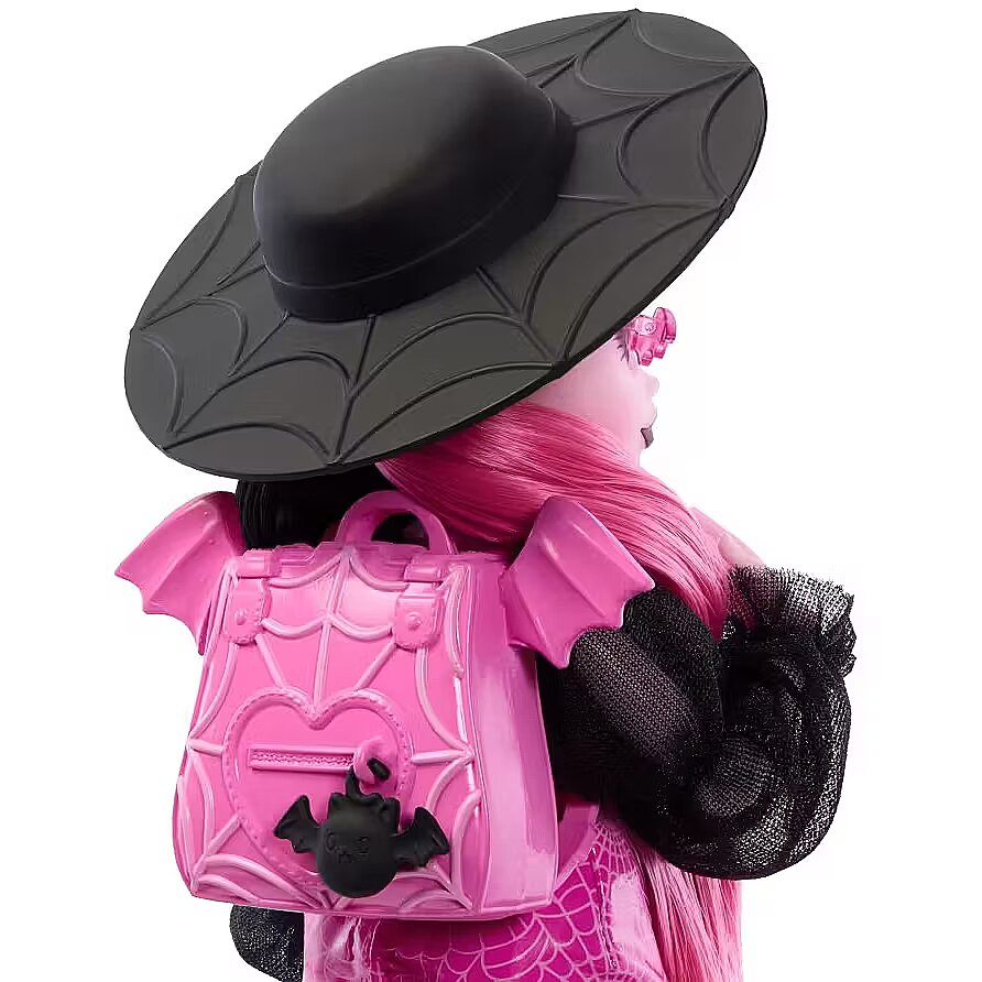 Description - Monster High Draculaura Lalka podstawowa Ta lalka Monster High ma niezwyKŁY styl! Draculaura prezentuje swój zmysł do mody ubrana w różowo-czarną stylizację. Jej zwierzęcy przyjaciel, Hrabia Nietoperz Wspaniały, też wygląda potwornie modnie. Dzięki możliwości ustawiania w różnych pozach i upiornie stylowym akcesoriom lalka Draculaura to doskonały prezent dla dzieci od 4 roku życia. Lalka z ruchomymi punktami. Lalka nie stoi samodzielnie. Kolory i elementy dekoracyjne mogą się różnić. Lalka Monster High Draculaura wygląda strasznie stylowo w uroczym stroju. W zestawie są też Hrabia Nietoperz Wspaniały i wyjątkowe akcesoria. Draculaura ma na sobie różową koszulkę z półprzezroczystymi, czarnymi, bufiastymi rękawami i pasującą do niej spódniczkę. Stylizację uzupełniają kapelusz, czarne pończochy i różowe buciki. Jej pupil, Hrabia Nietoperz Wspaniały, też jest potwornie stylowy ze swoją różową kokardką i obrożą. Zwierzaczek będzie wiernym towarzyszem nieskończonych przygód. Wśród akcesoriów są księga zaklęć, plecak, śniadaniówka, "napój", butelka "kremu z filtrem" SPF 500, okulary przeciwsłoneczne i krwisto czerwony "błyszczyk". Poznaj całą kolekcję lalek i zestawów Monster High, które zainspirują Cię do eksperymentów z modą i potwornie ciekawych przygód. Sprzedawane oddzielnie, zależnie od dostępności.