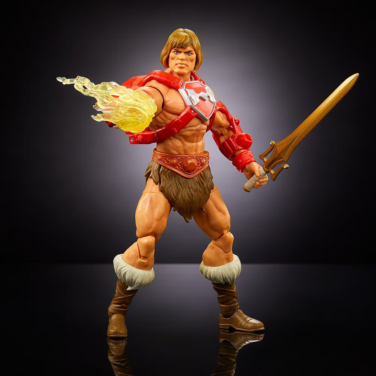 LongDesc - This Masterverse action figure of He-Man is an homage to the original Thunder Punch He-Man but with a New Eternia design. With the high level of detail collectors have come to expect, this 7-inch scale figure has 30 points of articulation and comes with the ancient Thunder Punch armor. His Power Sword fits into his Shield and red and gold Thunder Cap accessories are provided as a nod to the original figure. He comes beautifully packaged in a window box suitable for display. This Thunder Punch He-Man figure makes a great gift to start or build a MOTU collection. Colours and decorations may vary.
