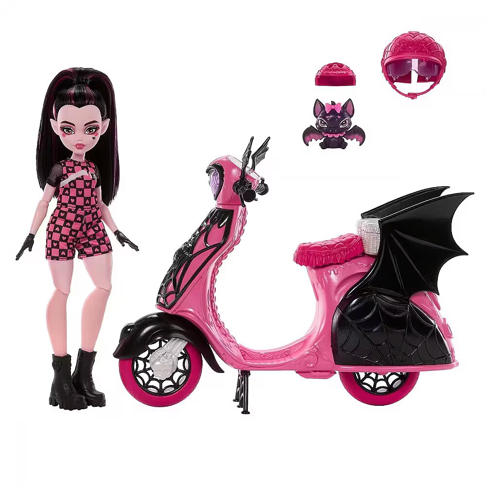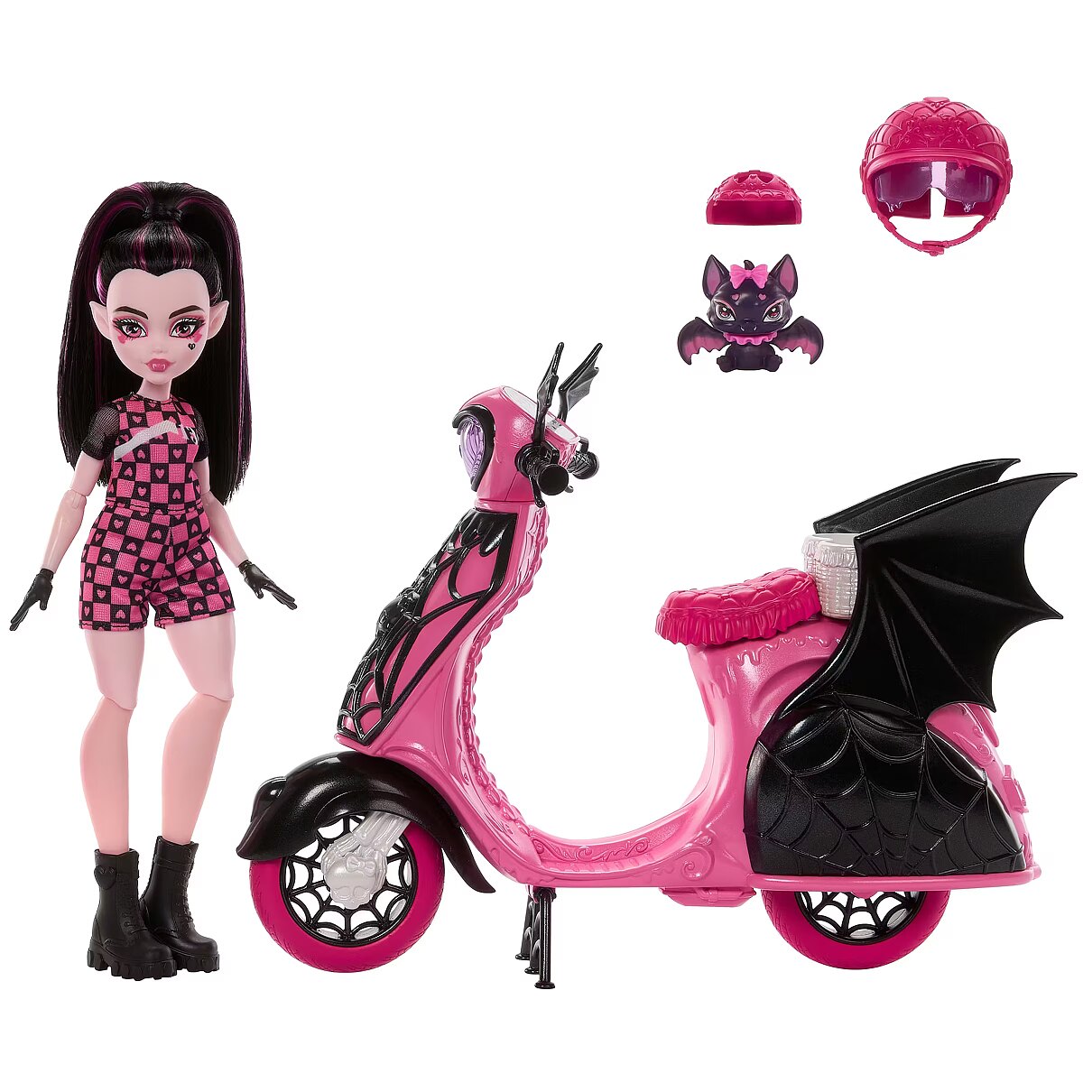 Accessories included - Lalka Draculaura Skuter Figurka nietoperza 2 kaski