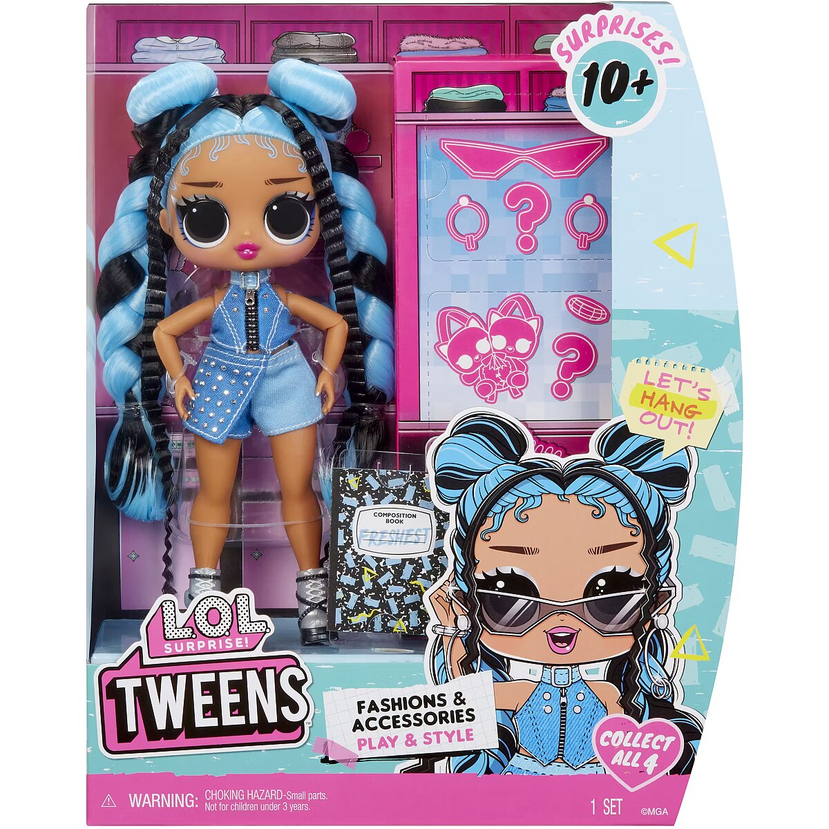 LongDesc - I’m in Be Tween, but right where I wanna be. Full of surprises & bold style. Look out world, cuz here I come. Introducing the newest L.O.L. Surprise! Core Tweens fashion dolls! These fan-favorite charming Tweens are being released in all new looks including different hairstyles and fashions! Discover what’s inside and get ready to unbox a gorgeous Tweens fashion doll with beautiful surprises including unique fashions, cute accessories, stylish shoes, and more! Collect all 4 BFFs!