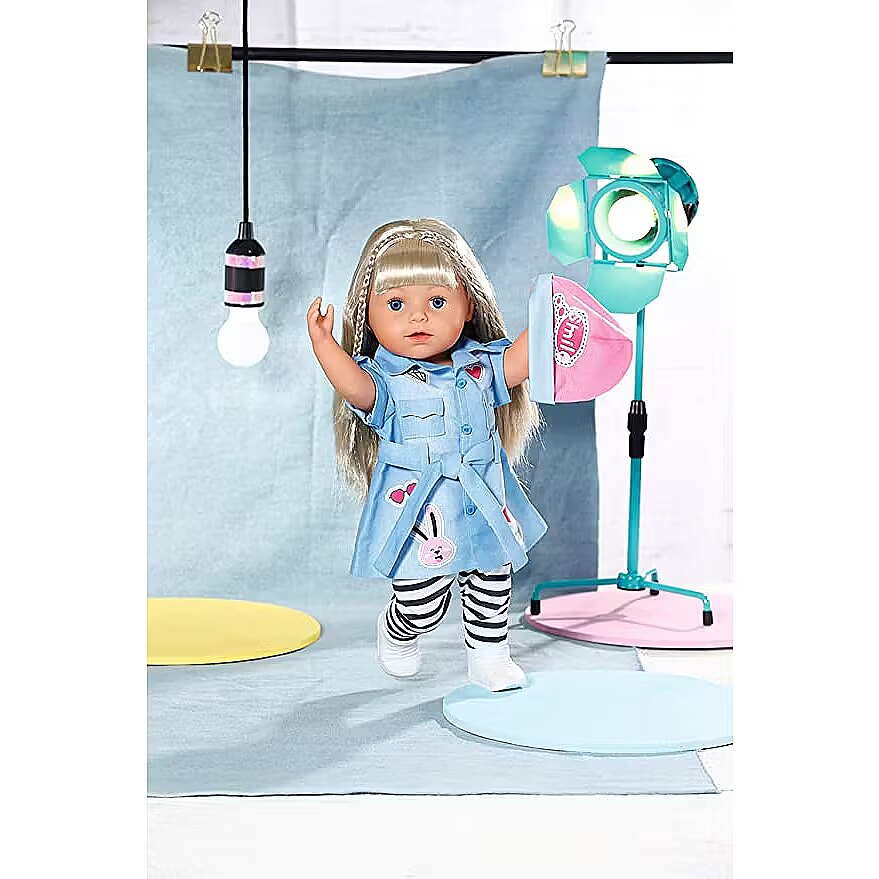 Name - ZAPF Creation BABY born Deluxe Jeans dress 43cm, doll accessories (with shirt dress, leggings, hat and shoes)