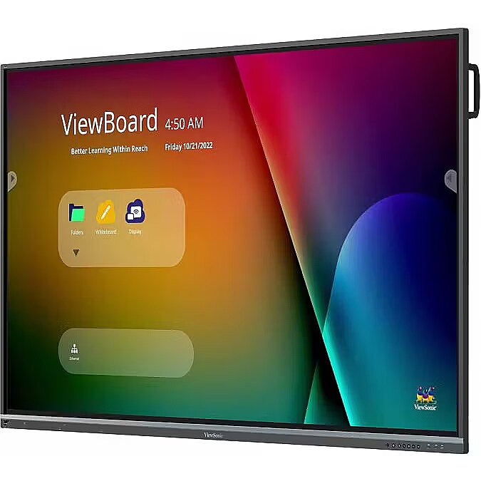 LongDesc - Designed with modern educators in mind, the ViewBoard® 50-5F Series offers an intuitive and interactive interface for a multi-user writing experience. With a single-cable USB-C for instant, worry-free connectivity, teachers can seamlessly plug-in and control their devices while continuing the lesson. Both students and educators enjoy smooth writing with Ultra Fine Touch Technology offering 40-point touch, and the dual-pen that comes in a range of colors and sizes. Rest assured you and your students' eyes are cared for and protected as the ViewBoard® 50-5F Series comes with Flicker-Free technology and an integrated TÜV certified blue light filter for all brightness levels. Fully integrated with the myViewBoard suite, the ViewBoard® 50-5F Series brings together hardware and software for a complete classroom solution. Compatible with a full line of accessories, the ViewBoard® 50-5F Series enables you to effectively teach with a variety of engaging tools.Smooth Writing with Ultra Fine Touch TechnologyEnjoy the incomparably smooth and natural writing experience offered by the dual-pen and Ultra Fine Touch Technology. ​The ViewBoard® 50-5F Series' multi-touch capability enables up to 40-point touch input by multiple users, supporting and fostering in-class activities and student collaboration.​One Cable to Do It All​Designed for simple use, the ViewBoard® 50-5F Series offers a USB-C port as part of its comprehensive connectivity. With this one-cable-solution, simply plug-in any compatible device for instant multimedia playback, data transfer, and power charging while enjoying a clutter-free space.Teach your Way with myViewBoard WhiteboardFully integrated with the myViewBoard suite and compatible across platforms, the ViewBoard empowers you to make the most of classroom time. Enjoy tailor-made tools, like pop quizzes, an immersive reader, digital spinners, and timers, for effortless lesson planning and activities no matter if you're teaching in the classroom or online. Students can use the ViewBoard which is split into up to six mini whiteboards, for enhanced learning through doing. Disclaimer: *The mini whiteboard features in Participate Mode is available on WhiteBoard for Windows.Quick Content Sharing for Multiple AttendeesSimultaneously cast up to four devices using the ViewBoard Cast solution which is built into the ViewBoard Box. With its split, extended, and grouped screen capabilities, presenters are equipped with an array of new sharing possibilities, no matter the device.Convenient Browser-based Screen SharingShare your screen with myViewBoard Display without any complicated setup. This browser-based casting service supports instant sharing from compatible devices without additional cables or pre-downloaded apps.Efficient Remote Communication and Management Update, schedule, broadcast, and manage multiple displays simultaneously from any location via a secure, user-friendly remote management system. Streamline campus communication with multimedia messages, share text announcements, or set up emergency alarms. All thanks to myViewBoard Manager. Disclaimer: *Task scheduling and multimedia broadcast are available with the optional Manager Advanced licensePerformance and Safety with the Latest OS ​Enjoy powerful performance delivered by the ViewBoard 50-5F Series’ octa-core CPU, while ensuring all your data is safely protected with the Android 11 OS. This latest version is also compatible with more third-party apps, so you can access all your favorite services within a familiar environment.Immersive Audio for Captivating LessonsBoost student engagement and information retention thanks to immersive sound. Boasting two 15W speakers and a 16W subwoofer, the ViewBoard® 50-5F Series magnifies music and videos with sound in unparalleled quality.Easy on the EyesThe ViewBoard® 50-5F Series employs the latest technology to safeguard the eyes of both children and adults, while not compromising on the high-quality visual experience. Flicker-Free Technology, TÜV-certified low blue light, and anti-glare coating work together to provide safe and comfortable use, all day long.Grow GreenCommitted to sustainability, ViewSonic is actively working to implement advanced energy efficiencies and eco-friendly concepts across product lines. The ViewBoard® 50-5F Series meets energy consumption standards, is attentive to supply chain carbon emissions, and end-of-life management. It is also EPEAT bronze certified, making it a great environmentally friendly product. Customize your Teaching ​The ViewBoard® 50-5F Series comes complete with a full line-up of accessories. Customize your device with a portable speakerphone, slot-in PC, a motorized trolley cart, and a document camera, alongside many more add-ons for all teaching needs and scenarios.