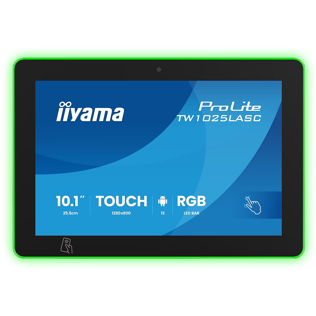 LongDesc - The ProLite TW1025LASC-B3PNR touch panel PC is a perfect choice for high-use environments such as booking rooms, information desks or other corporate and hospitality applications. The Optical Bonded Projective Capacitive (PCAP) 10-point touch technology ensures a seamless and accurate touch response and a lower light reflection, in addition, the display is protected against humidity and potential moisture development. Thanks to the pre-installed Android 13 operating system, it is possible to easily customize the monitor by installing applications directly to it. The Power over Ethernet technology (POE) allows to provide both data connection and power by a single cable, simplifying all installations. Thanks to the NFC/RFID reader, the touch panel PC allows to communicate wirelessly with enabled devices or tags within close proximity and the RGB Led bar will clearly and intuitively indicate the availability status of the room. Additionally, it integrates effortlessly with iiSignage² , iiyama’s Content Management System (CMS), giving you full control over your messages and advertising, in landscape portrait and face-up position. Together with the built-in 5 megapixel camera, microphone and speakers it offers limitless, interactive installation possibilities.