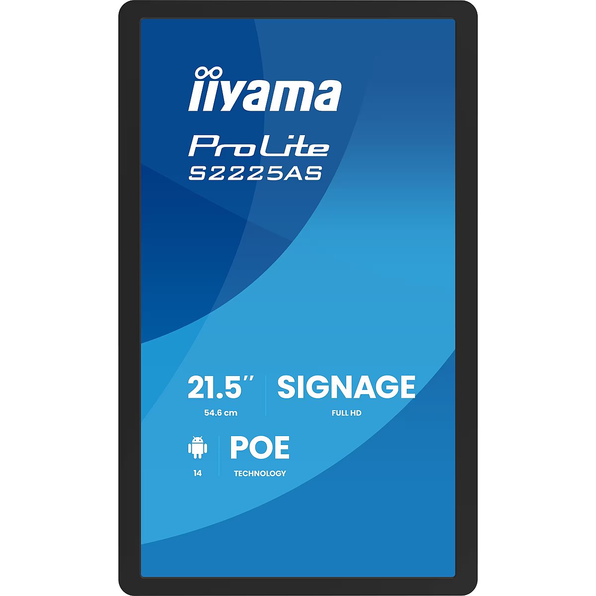 LongDesc - The ProLite S2225AS-B1P is a 21.5” Android-based display created specifically for reliable content playback in professional environments. This specialist signage display is ideal for supermarkets, retail stores and public spaces where clear, continuous visual communication is required. The Full HD IPS panel with 500cd/m² brightness ensures excellent visibility, while Power over Ethernet (PoE) allows for a simple and efficient installation using a single cable for power and data. iiyama guarantees compatibility with this platform for a minimum of 5 years, ensuring long-term reliability and peace of mind for professional installations.