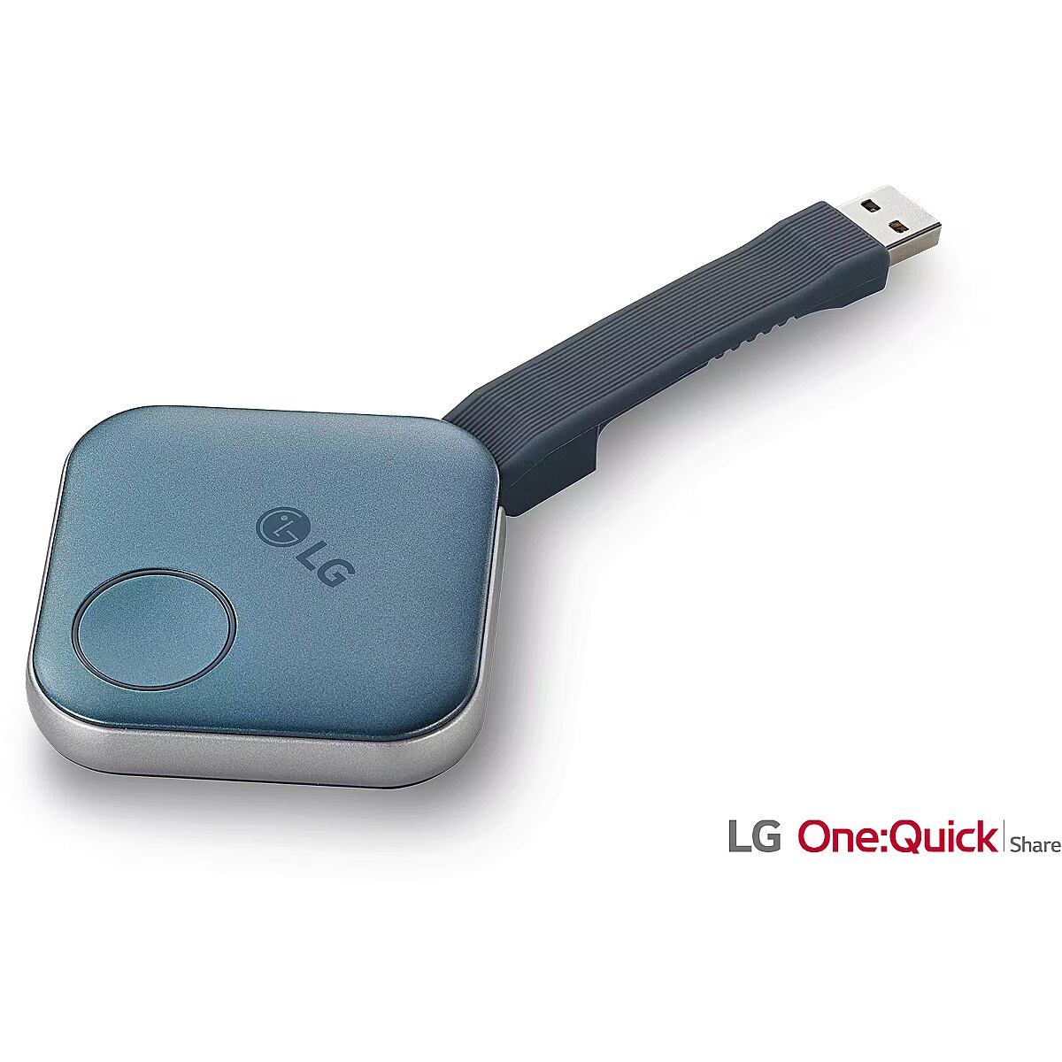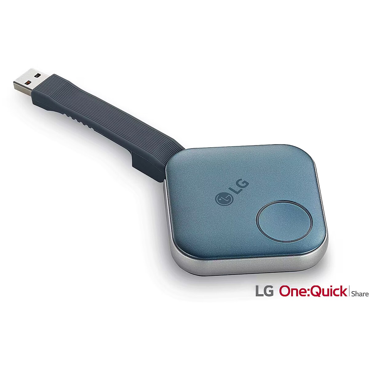 Description - USB One: Quick Share Simple and efficient connection LG One:Quick Share is a wireless screen sharing solution available with LG webOS Signage devices. It is a USB to computer data transfer module (SC-00DA) and application. With One:Quick Share, users can easily share their computer screen to the LG monitor and can manage the basic functions of the LG Signage device. Easy pairing USB attachments can be connected to LG Signage displays to automatically pair the devices, which can then be easily disconnected. Once connected, the devices are ready for pairing. Plug and Play Easily share your computer screen on the LG Signage screen by plugging the USB Attachment into your PC and pairing the devices. One-click wireless screen sharing With the press of a button on the USB Set Top Box, you can share your PC screen, switch to another screen or show up to 4 screens on your Signage device at once. Built-in Wi-Fi With LG Signage's SoftAP feature, the USB Appliance and Signage screens can be easily connected without the need for an additional transmitter. Remote-free settings Use the One:Quick Share PC app to adjust default Signage screen settings (volume, picture mode, auto brightness adjustment, etc.) without a remote control, and edit schedules and notes or Office Meeting presentation settings. Screen Manager Shared screens on the Signage screen can be managed by a meeting organiser with administrator privileges. He or she can rearrange shared screens, disable selected screens and choose from a number of linked screens.