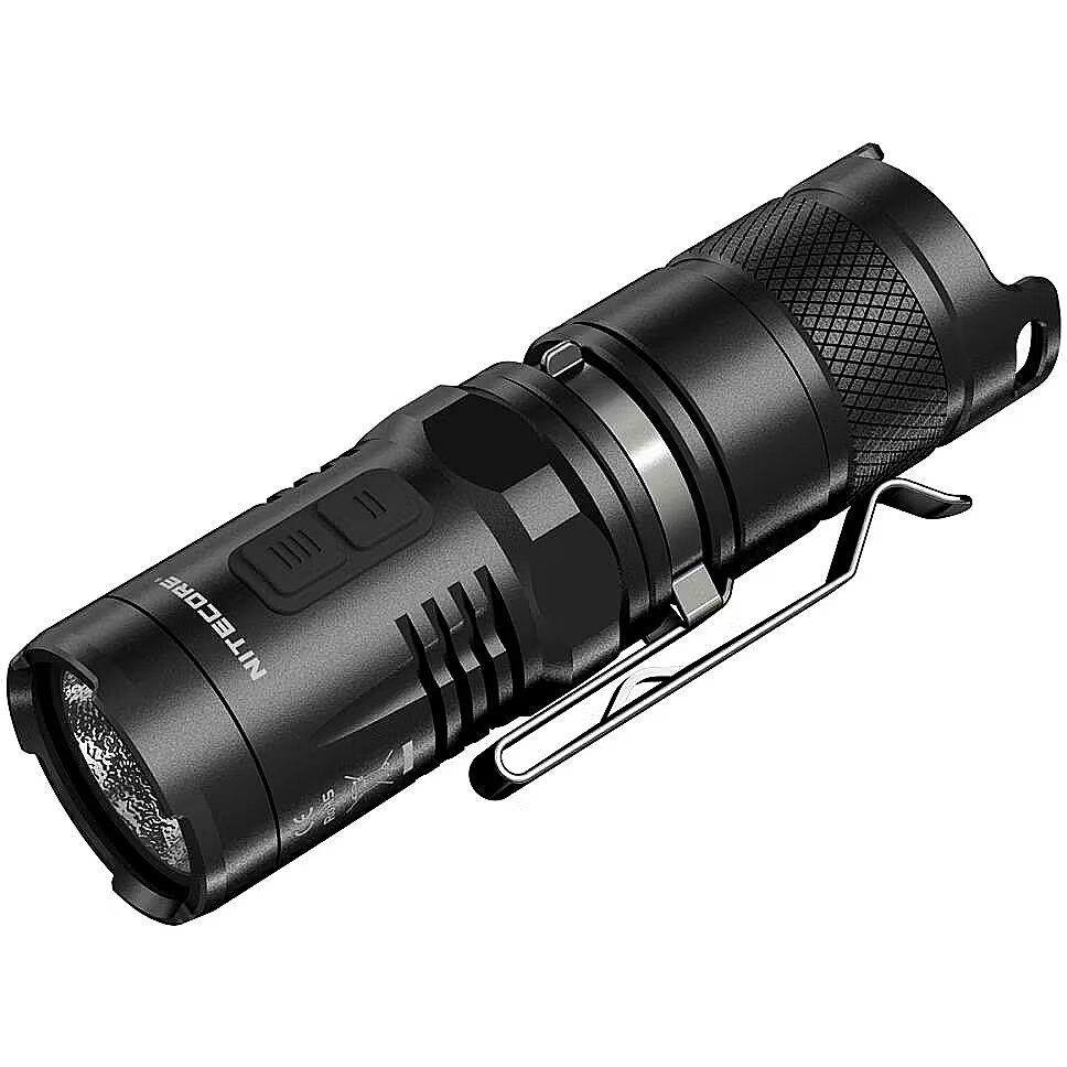 Description - Carry light everywhere you go with the NITECORE MT10C super bright, 920 lumen, compact, tactical flashlight. The MT10C boasts a powerful red light suitable for outdoor applications that preserves night vision while hunting without attracting insects. The red light beacon serves as a signal light for emergency situations. It has 5 brightness levels with a maximum throw of 207 yards on Turbo and runtime up to 170 hours on Low. Max output of 920 lumens with up to 207 yards of throw Red LED provides constant or flashing illumination 5 brightness levels and 3 special modes of white light Direct access to Turbo and Red Light modes Compatible with IMR18350 and CR123 batteries Stainless steel titanium-plated two-way clip for easy carry