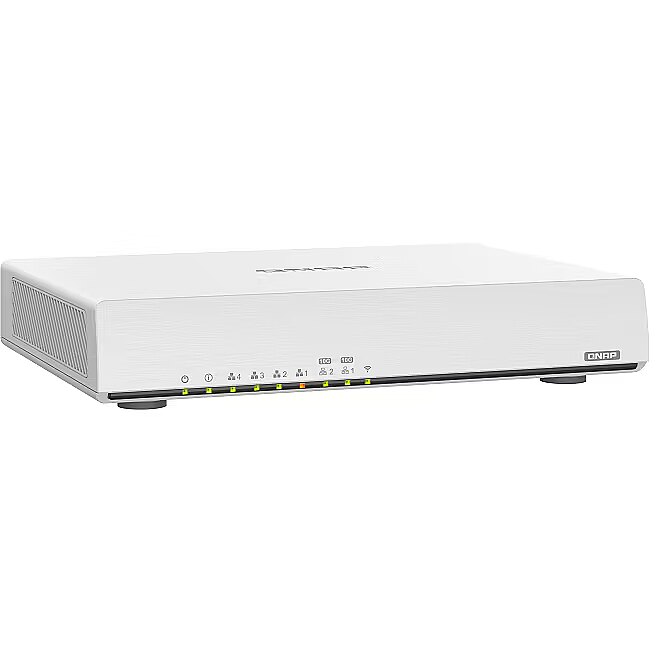 ShortSummaryDescription - QNAP QHora-301W, Wi-Fi 6 (802.11ax), Dual-band (2.4 GHz / 5 GHz), Ethernet LAN, White, Tabletop router