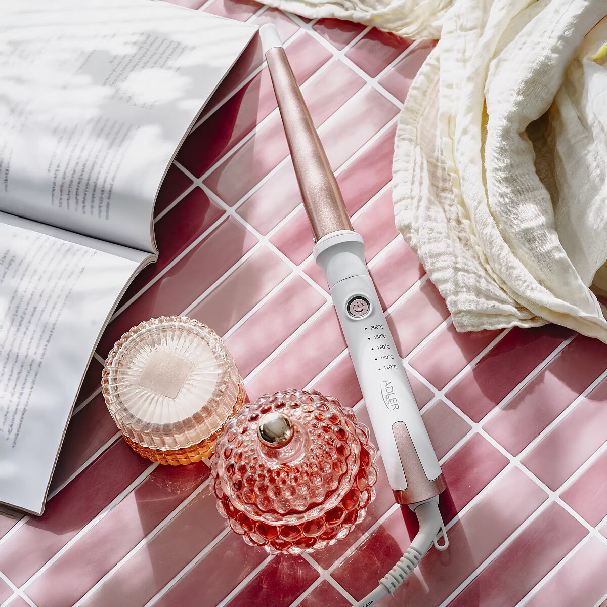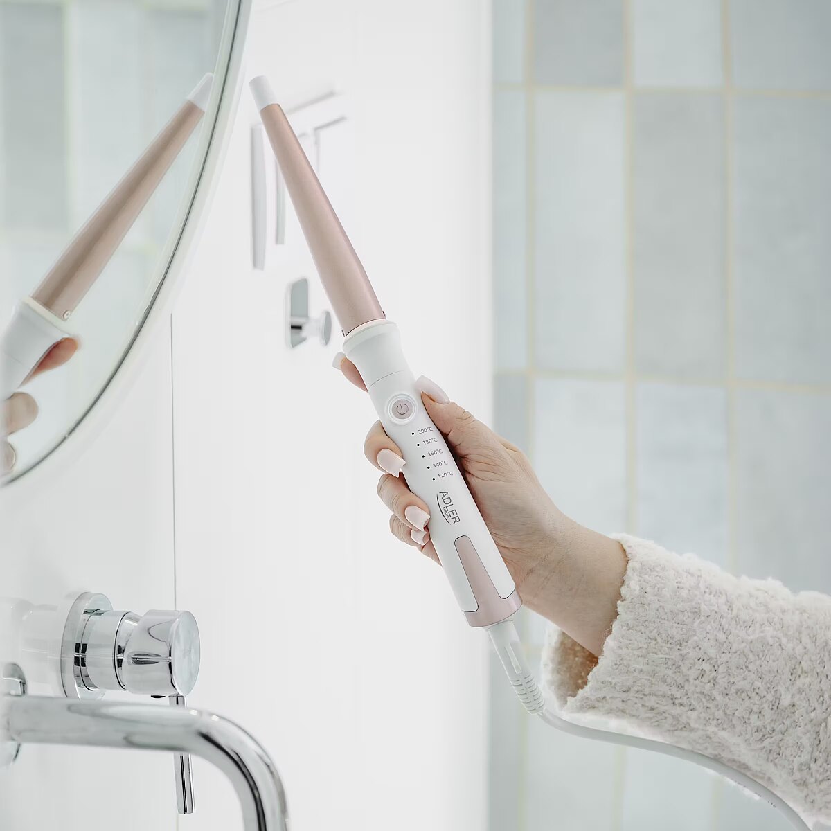 Name - Adler Conical curling iron | AD 2119 | Barrel diameter 12-25 mm | Temperature (min) 120 °C | Temperature (max) 200 °C | Number of heating levels 5 | 45 W | White/Pink