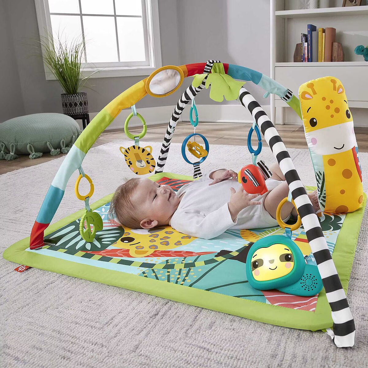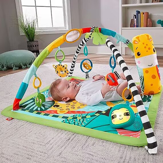 Title - Fisher-Price 3-in-1 Rainforest Sensory Gym Tummy Wedge with 6 Baby Toys Newborn to Toddler