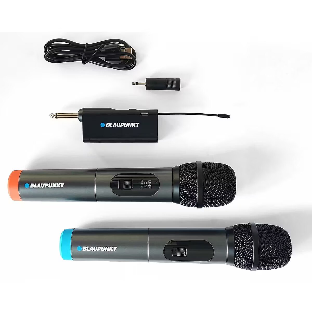 Mikrofony bezprzewodowe Blaupunkt WM60UDB pracują na częstotliwości UHF, która jest najbardziej odpowiednia do tego typu urządzeń. Dzięki temu, że fale UHF rozchodzą się głównie w linii wzroku, mikrofon może być stosowany w otwartej przestrzeni, ale jednocześnie transmisja sygnału jest na tyle silna, że ściany budynku nie stanowią dla niej przeszkody i mikrofony mogą być również używane w pomieszczeniach. Przesyłanie ultra wysokich częstotliwości pozwala uzyskać bardzo dobrą jakość nadawanego sygnału, przy zastosowaniu stosunkowo krótkiej anteny. Z tego też powodu odbiornik dołączony do mikrofonu jest bardzo praktyczny i poręczny, a maksymalny zasięg roboczy wynosi około 30 metrów. Zasilanie