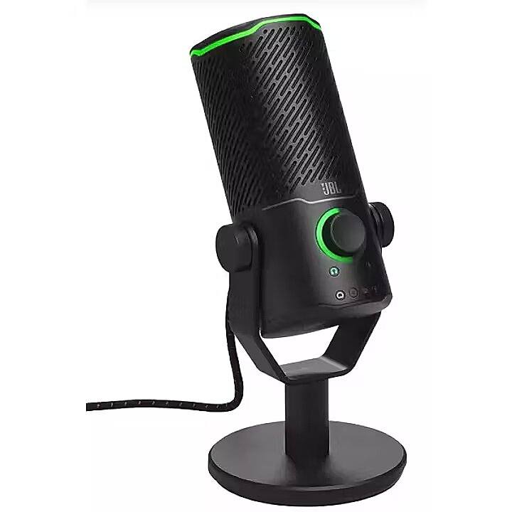 LongDesc - Sound is survival Let your voices be heardSound like a pro with the JBL Quantum Stream Studio microphone. Whether you're gaming, streaming or recording by yourself, with a co-host, or with a roomful of guests, you can quickly switch between four different pickup patterns so that everyone can be heard. No additional gear required to level up your game. You'll always know how loud things are getting thanks to the RGB VU meter, and the dynamic range compressor makes sure everyone's voice stays at the same level. Streaming a game? Fully control the balance between the game sounds and your own commentary. Use the included JBL QuantumENGINE PC software to adjust EQ, apply noise reduction, or customize the mic's radiant RGB lighting.Triple condenser microphones for perfect streamingStream or record one, two, or more voices through three lightweight, fast-moving, and sensitive (-37dB) 14mm cardioid condenser mics, all with a wide, flat frequency range (50~16kHz). At 192kHz/24 bits recording, your streams and recordings will sound studio-quality and capture every nuance of what you're sayingFour selectable voice pick-up patternsA single button on the microphone's front quickly changes between four voice-pickup patterns: cardioid for when you're recording or streaming by yourself, bi-directional if you're interviewing someone on the opposite side of the mic, stereo if you and your co-host are sitting on the same side of the mic or you're recording a musical instrument, and omnidirectional for any stream or podcast where more than two people are talking.Dynamic range compressorDon't worry about trying to talk at the same volume all the time: the dynamic range compressor keeps your voice from clipping if you get too loud, or gives you a boost if you're speaking too softly.