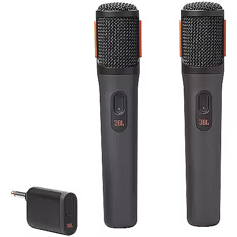 LongDesc - Make your good times even better with JBL PartyBox Wireless Mics. Just plug them into any JBL PartyBox, or use the dongle for the freedom of a wireless connection, and let your voice be heard. Indoors or outside, you'll sound clear and captivating on these mics specially tailored to sound amazing over any PartyBox speaker. A built-in foam pop filter minimizes any extraneous vocal sounds as you sing a duet with your best friend, and a shock mount system keeps things quiet when you're passing the mic to someone else. Up to 20 hours of play time and because you can still use a mic even while it's charging on the PartyBox's built-in power bank, the fun will last as long as the party does. Rock the house with the JBL PartyBox Wireless Mic.Clear voice, crisp soundThe cardioid pickup pattern of these mics deliver a warm, clear, and crisp vocal sound that's designed to make everyone sound their best over any JBL PartyBoxMinimize all unwanted noiseA shock mount system minimizes the sound of the mics passing from one hand to another, while a built-in pop filter eliminates any extraneous breathing sounds that you don't want to be part of your performance.Easy to useJust plug in and start singing. It's really that simple.