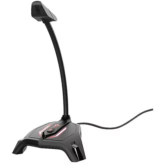 LargeDescHTML - Key featuresUSB gaming microphone with flexible gooseneckIdeal for use with Twitch, YouTube or voice chats while gamingStylish LED-illuminated base with easily accessible mute buttonLED indicator: light is on when microphone is active and off when mutedCompact size: takes up little desk spaceAnti-slip rubber feet provide stability140cm cable length Compact Gaming Microphone Let yourself be heard – whether it’s by your followers or your teammates. The Zabi LED-Illuminated USB Gaming Microphone is a handy desk microphone that captures and streams you at your best. Small in size but big in functionality and style, this microphone is fitted with a few convenient design details. It makes recording, streaming or voice chatting a breeze. Easy Talking Record new content, direct your team mates whilst gaming, or host an online meeting; you can use the Zabi for all your streaming, gaming and recording needs. If you find that your hands do a lot of the talking, the non-slip LED-illuminated base provides great stability and the mute button is easily accessible if you don’t want to be heard for a while. Smart Features The Zabi’s got all the features you’d want from a desk mic, which makes it so super smooth to operate. Its flexible neck can be moved into any position so that you can comfortably settle down for a chat wherever you like. What’s more, it comes with a 1.4m USB cable, so you can set it up in any corner of your desk. The LED light on the button indicates when you can be heard; it comes on when the microphone is active and turns off when you are muted.
